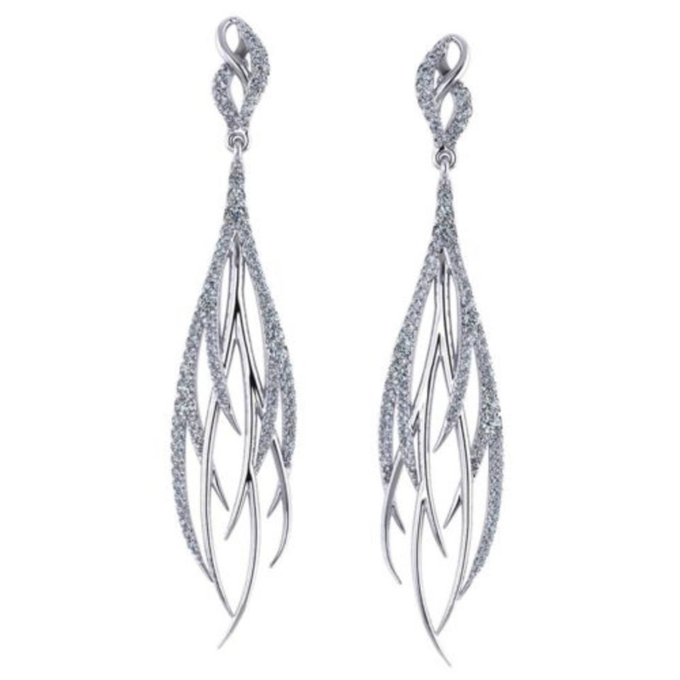 ต่างหูเพชรเพาะเลี้ยงทรงขนนกประณีตทอง 14K