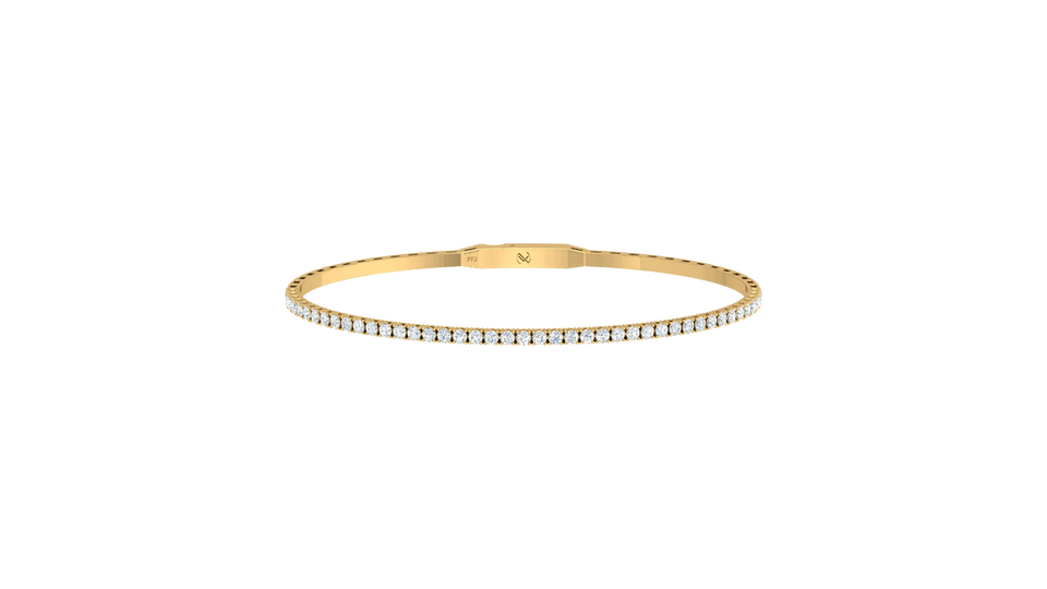 กำไลข้อมือทอง 14K ประดับเพชรแท้สำหรับผู้หญิง ดีไซน์โค้งครึ่งวงกลมแบบยืดหยุ่น | 1.00Ctw ชุบโรเดียม ทันสมัย