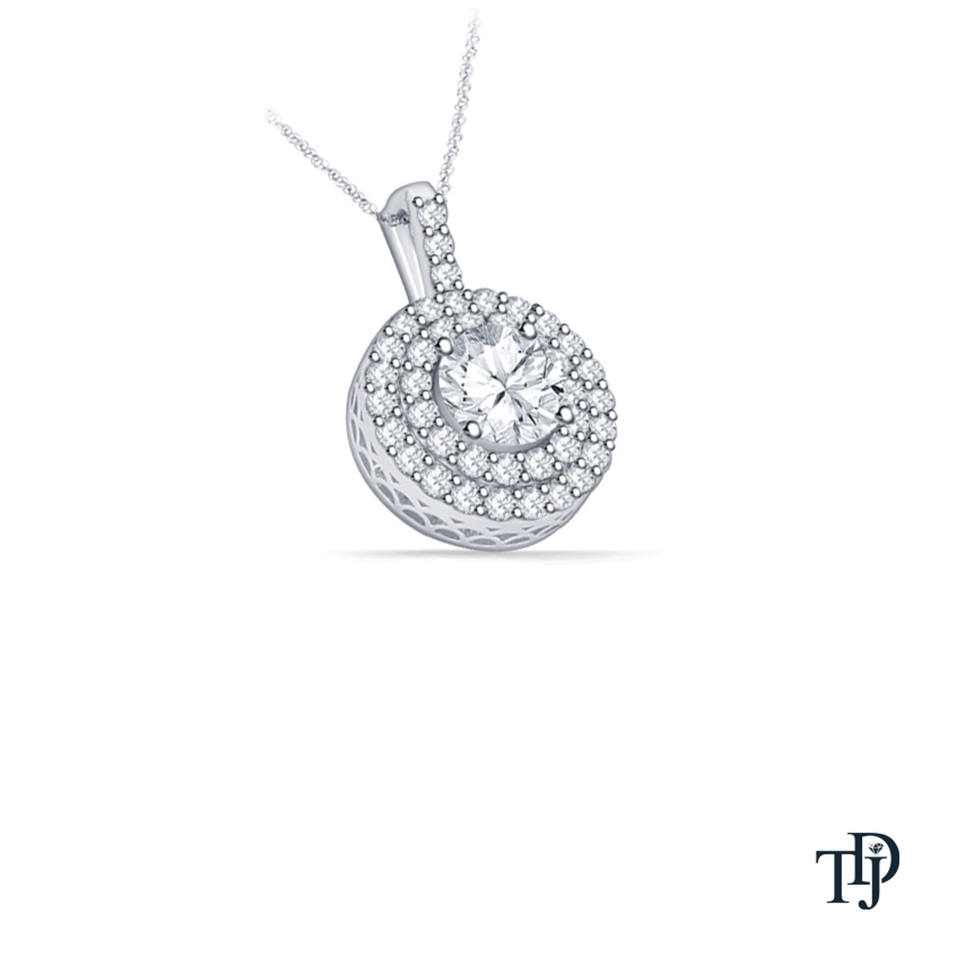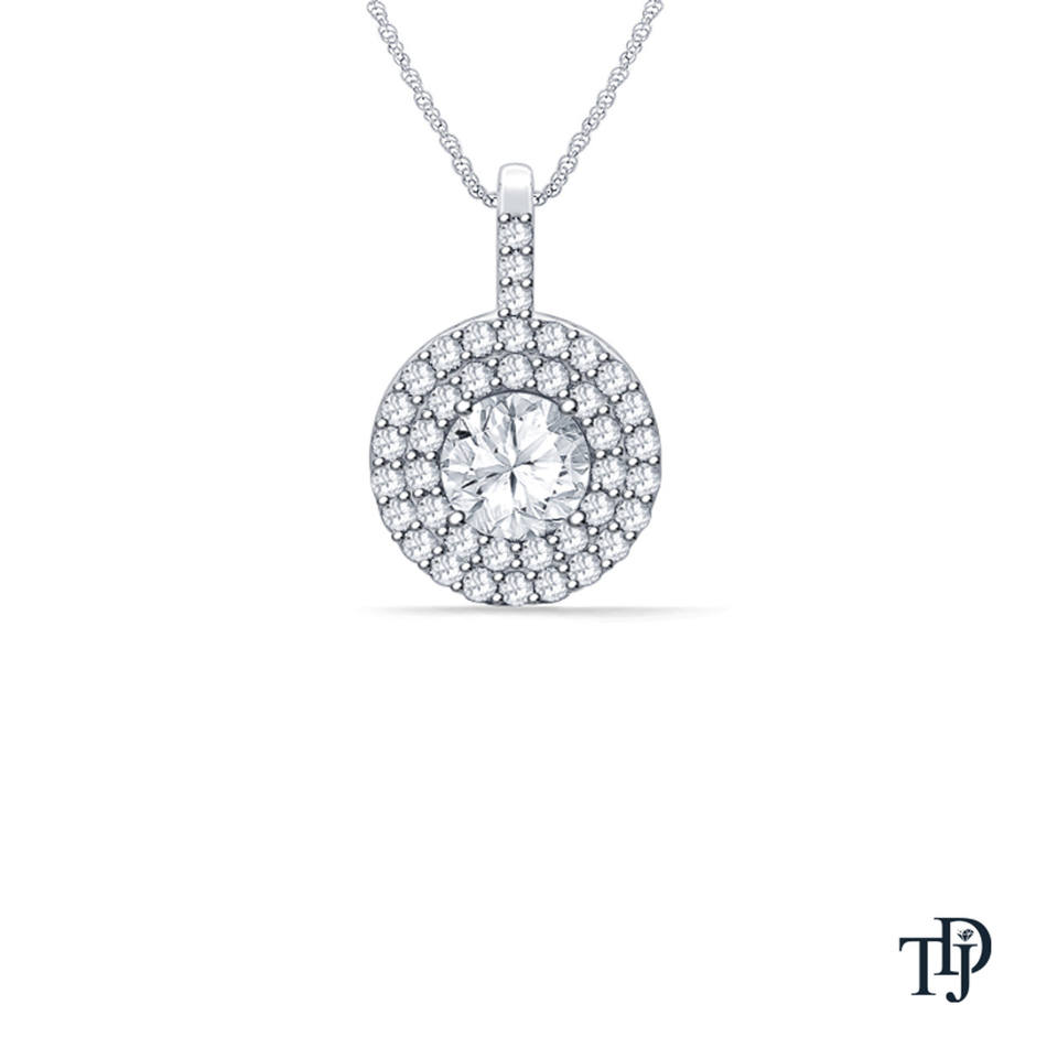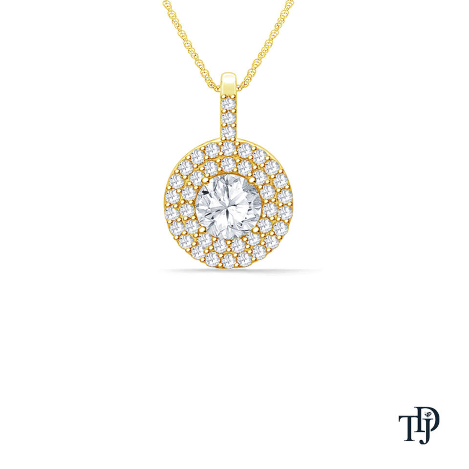 จี้เพชรทรงกลมแบบโซลิแทร์ 14K ทองคำแท้ ประดับเพชรแล็บโกรว์แบบดับเบิ้ลฮาโล พร้อมสายสร้อยคอ รับผลิตแบบ OEM ขายส่ง ขายปลีก ผู้ผลิต