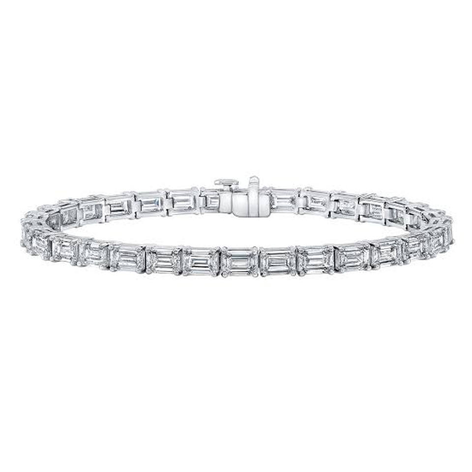 สร้อยข้อมือเพชรทรงสี่เหลี่ยมมรกต 14K ทองคำแท้ ประดับเพชรเลี้ยงในห้องปฏิบัติการ แบบตะวันออก-ตะวันตก
