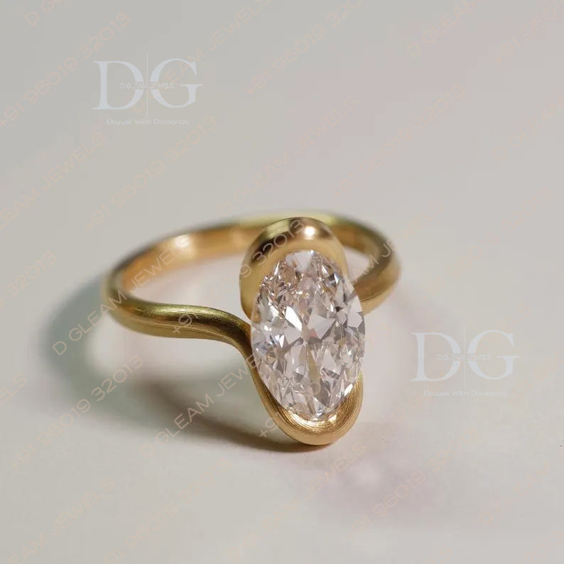 แหวนหมั้นทอง14K แหวนเพชร4กะรัตทำด้วยมือครึ่งกรอบการตัดวงรีของขวัญวันครบรอบแต่งงานที่สมบูรณ์แบบสำหรับปาร์ตี้
