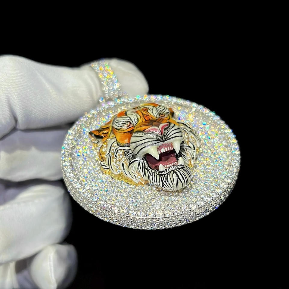 สร้อยคอทอง14K สุดพิเศษจี้รูปสัตว์แนวฮิปฮอปของผู้ชายพร้อมจี้เพชรธรรมชาติทรงเหลี่ยมตัด