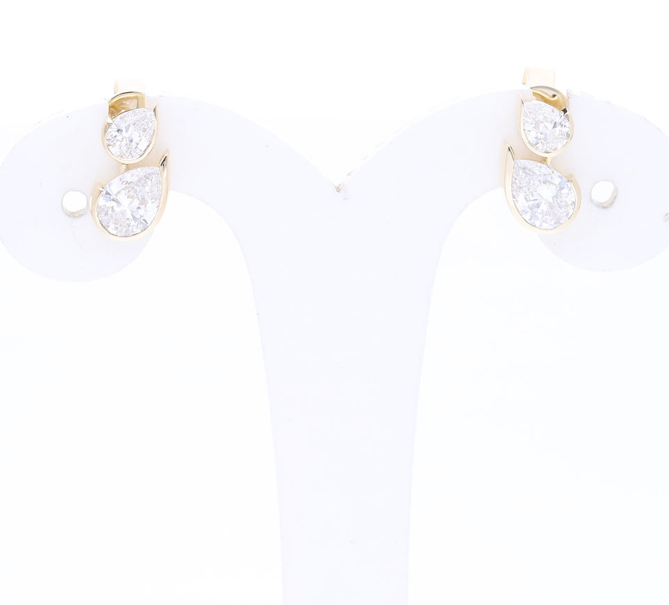 14K Gold F VVS VS Lab Grown CVD Diamond Rhodium Plated Classic Double Pear Cut Drop Earrings Elegant Bezel Set Fine Jewelry