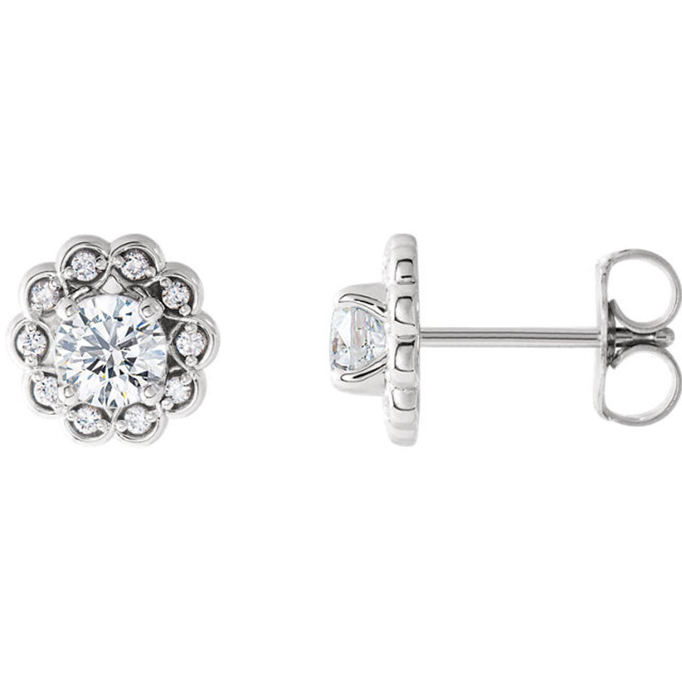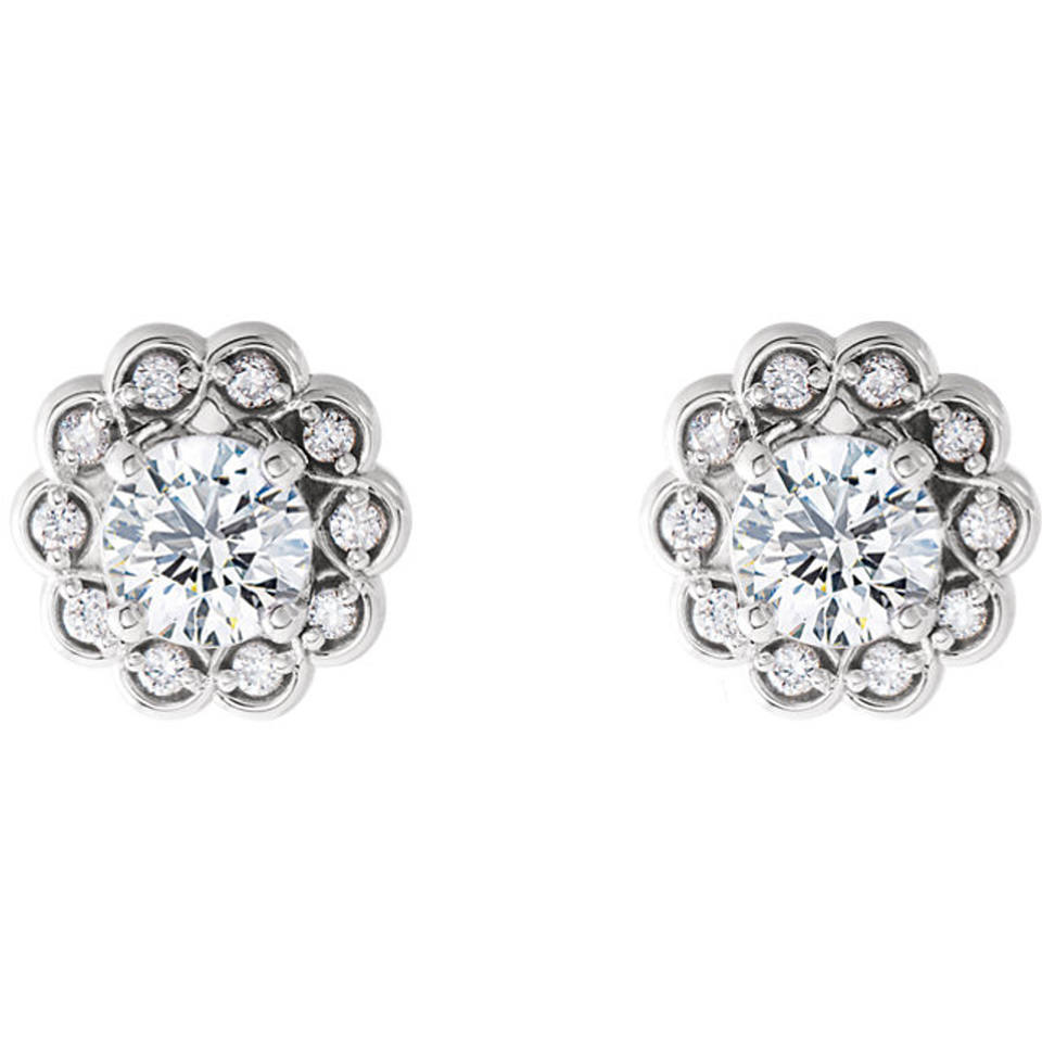 ต่างหูเพชรทรงกลมแบบ Halo ดีไซน์ดอกไม้ทอง 14K เพชรเพาะเลี้ยง
