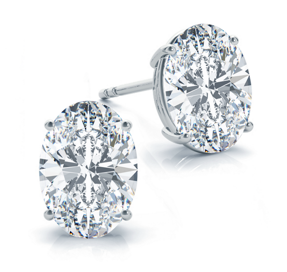 14K Gold Four Prong Classic Oval Cut Diamond (Natural) Stud Earrings