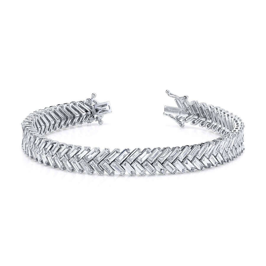 สร้อยข้อมือเพชรเทนนิสทรงบาแกตต์แบบซิป 14K ทองคำคุณภาพสูง
