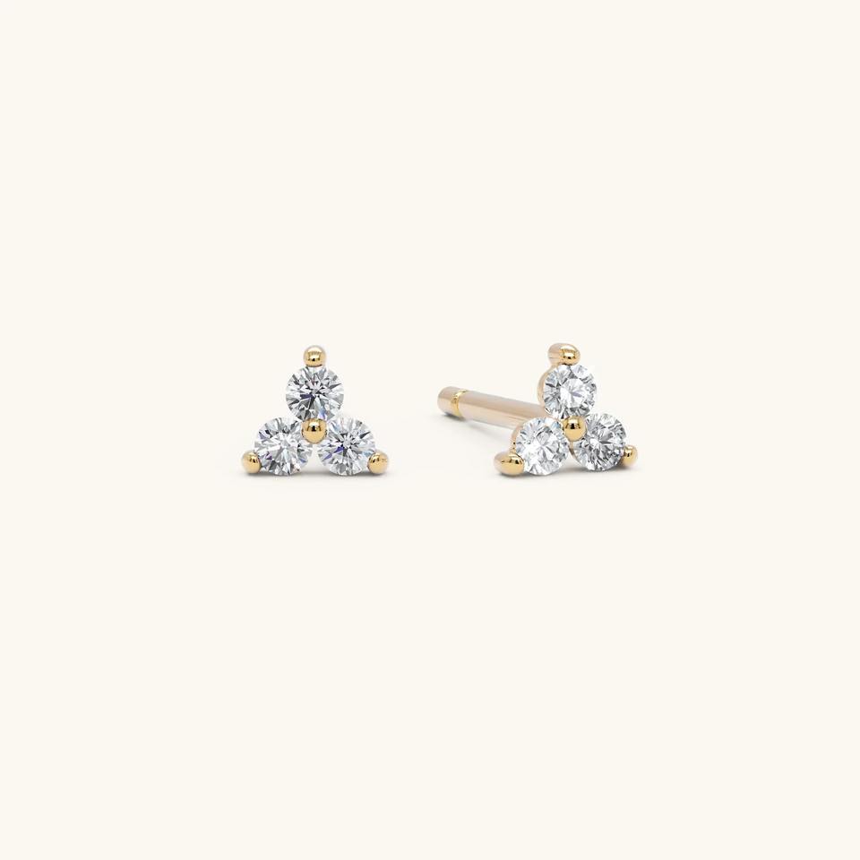 ต่างหูเพชรเม็ดเดี่ยว 14K ทองคำแท้ เพชรเลี้ยงในห้องปฏิบัติการ ดีไซน์เรียบหรู 3 เม็ด สำหรับผู้หญิง - ของขวัญสำหรับงานแต่งงาน งานครบรอบ
