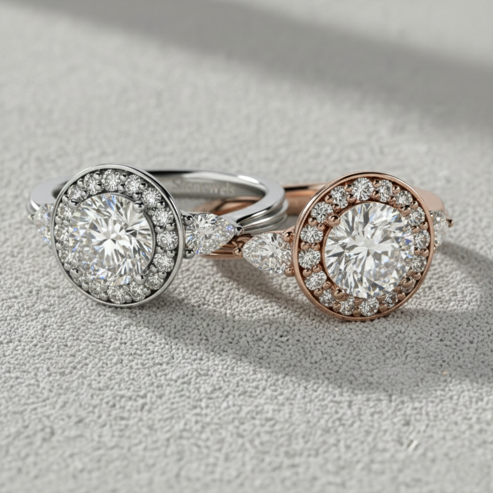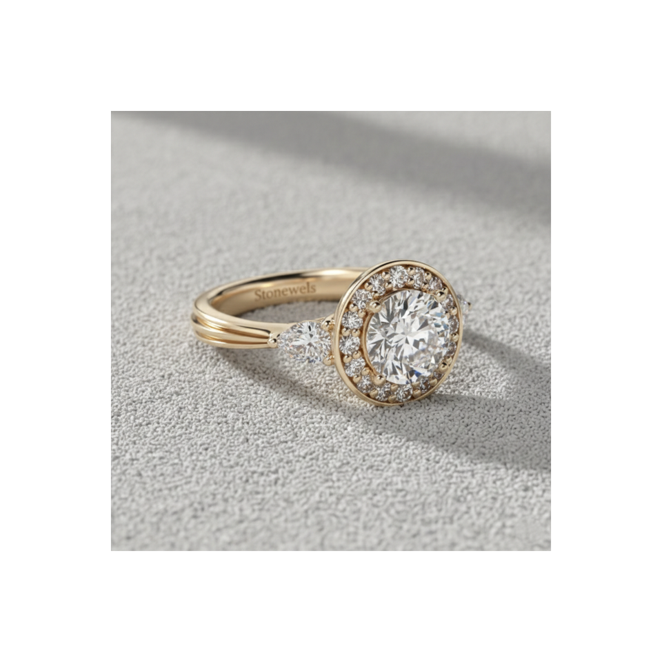 หมายเลขรุ่น:Pear Shape Side Stone Diamond Halo Ring