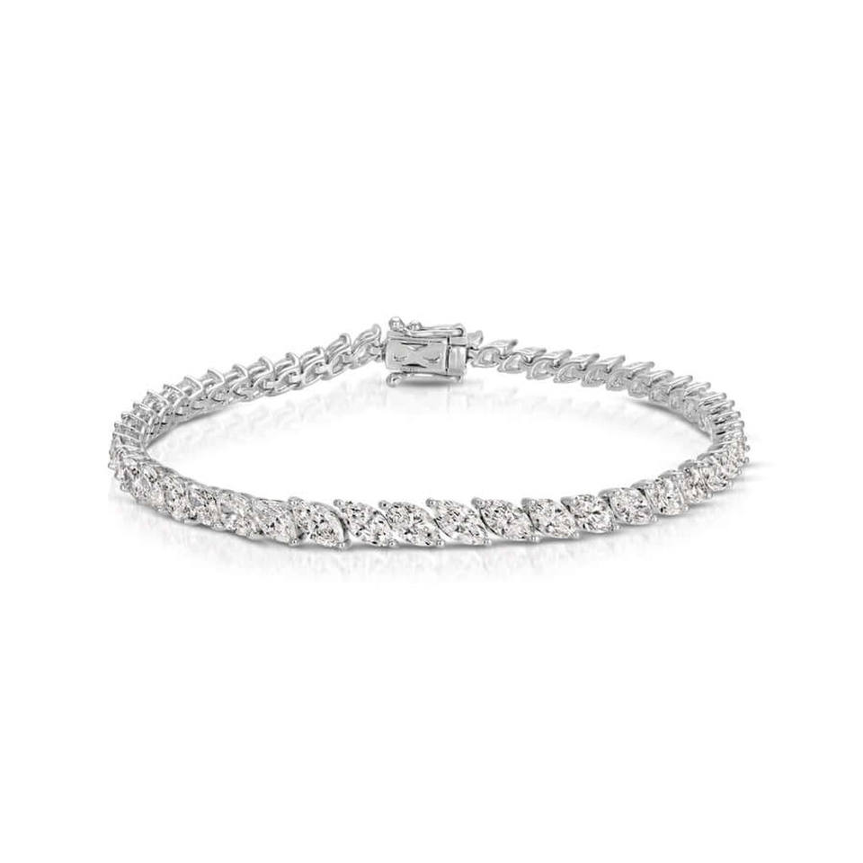สร้อยข้อมือเพชรทรงมาร์คีส์แบบเรียงกัน 14K ทองคำ ประดับเพชรเลี้ยงในห้องปฏิบัติการ