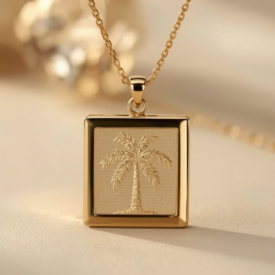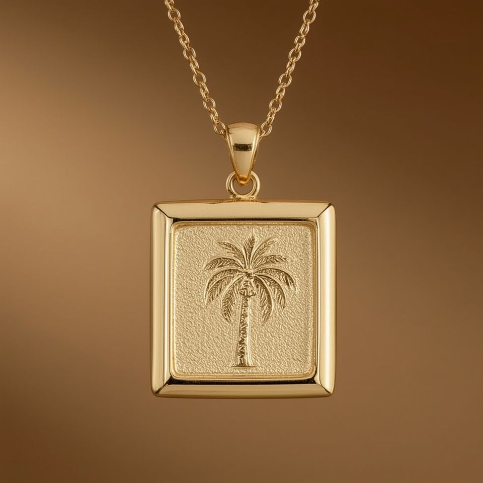 สร้อยคอประดับอัญมณีหรูหราสีทอง14K พร้อมโซ่แฟชั่นสำหรับผู้ชายและผู้หญิงดีไซน์ต้นปาล์ม