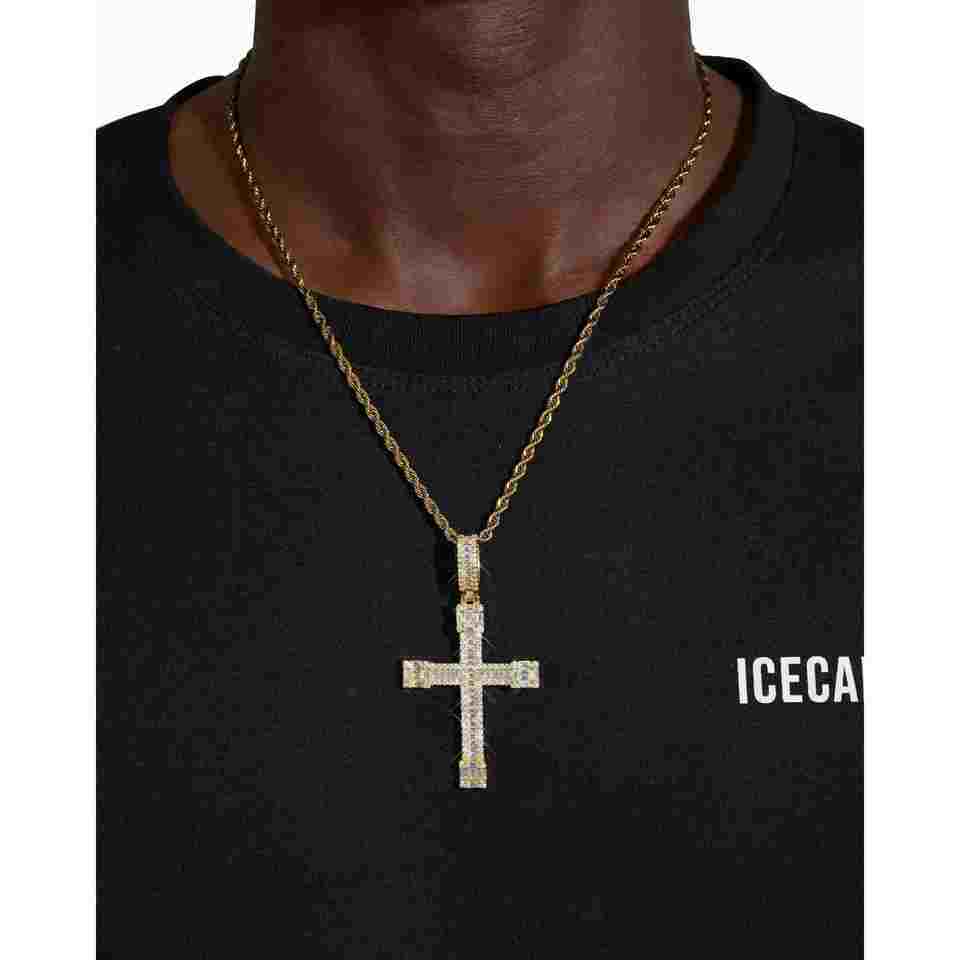 จี้กางเขนประดับเพชรโมอิสซาไนต์ทรงบาแกตต์ทอง 14K ดีไซน์คริสเตียนสำหรับผู้ชาย สวมใส่ได้ทุกวัน