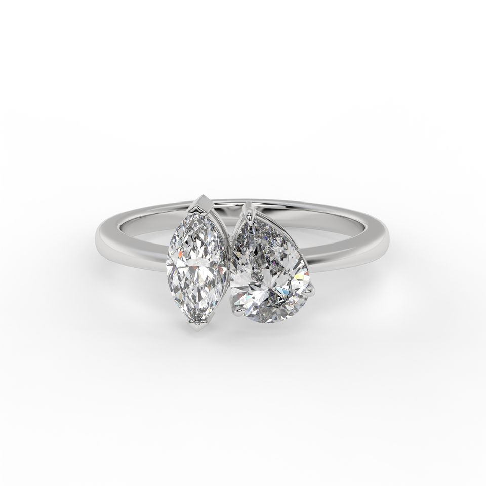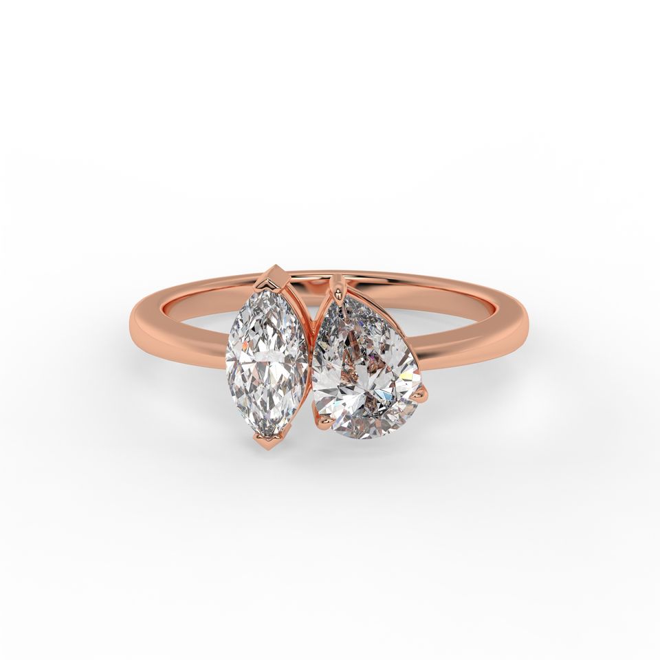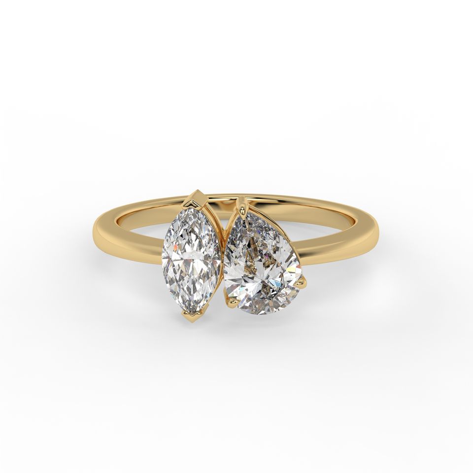 แหวนเพชรโมอิสรูปลูกแพร์ทอง14K สำหรับผู้หญิงแหวนหินสองชิ้นทันสมัย