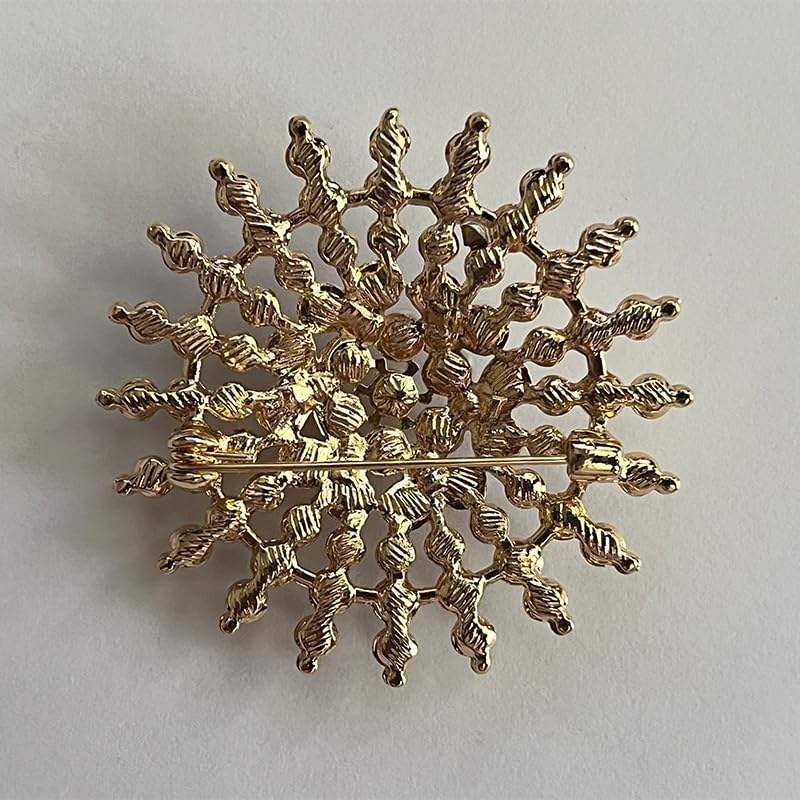 14K Gold Plated 50mm Sun Pearl Brooch Pin Women's Trendy Crystal Brooch Elegant Sunflower Snowflake Design with Cat Pattern
