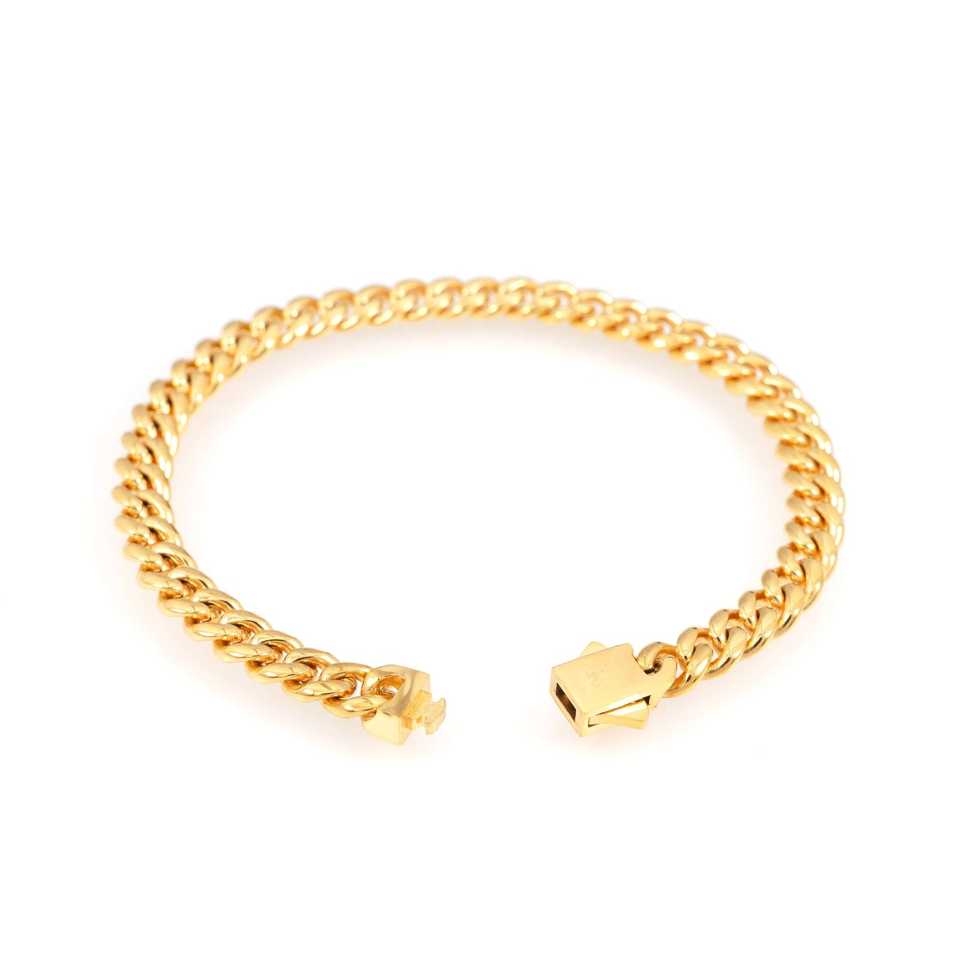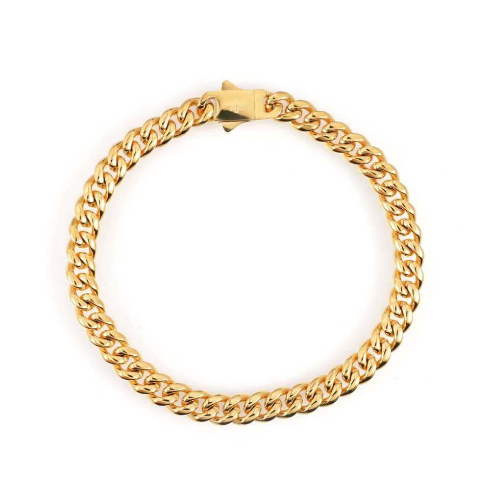 สร้อยข้อมือทองคำ 10K สำหรับผู้ชาย ทองคำสีเหลือง ขนาด 6 มม. แบบ Cuban Link ลายเรขาคณิต ทันสมัย สไตล์ศาสนา ประดับมุกและเพชร เหมาะสำหรับเป็นของขวัญ