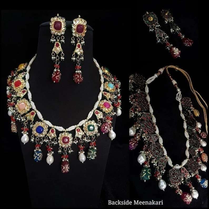 ชุดสร้อยคอเจ้าสาวชุบทอง 14K ชุดเครื่องประดับสำหรับงานปาร์ตี้ ชุดเครื่องประดับเจ้าสาวแบบปากีสถาน ชุดเครื่องประดับงานแต่งงานแบบมินาการี สร้อยคอแบบบอลลีวูด
