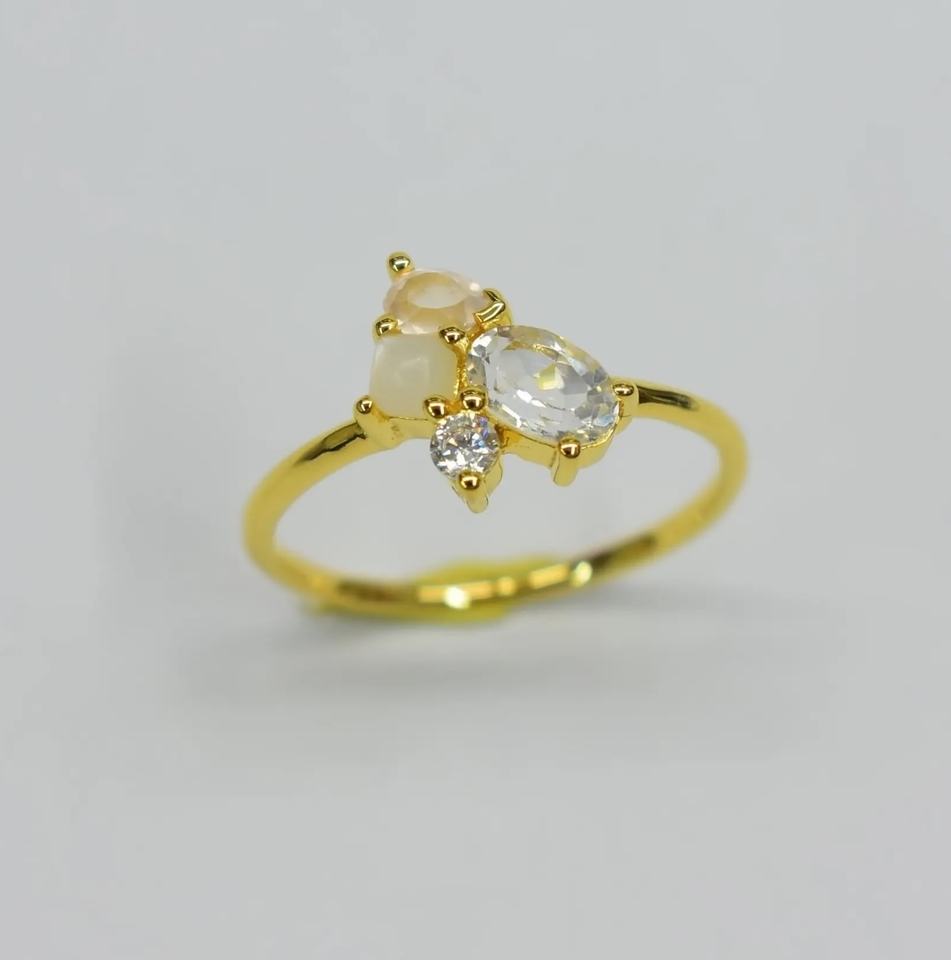 แหวนโรสควอตซ์สีขาวบุษราคัมเคลือบทอง14K ปรับแต่งได้ของขวัญงานปาร์ตี้งานหมั้นสำหรับงานแต่งงานและวันครบรอบ