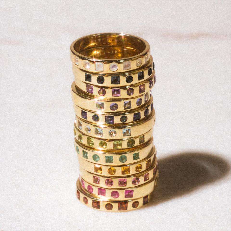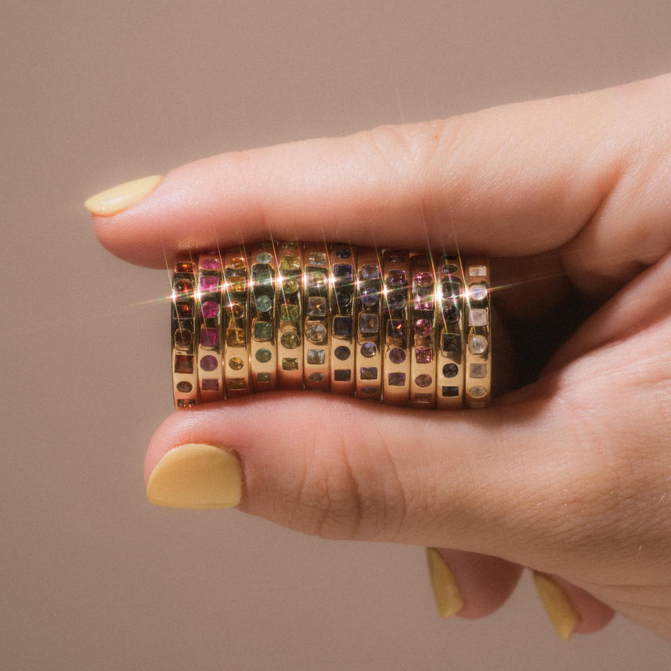 ชุดทองแดงชุบทอง14K ชุดเจาะเพทายสีสันสดใส12เม็ดหินวันเกิดเครื่องประดับของขวัญสำหรับครอบครัวของผู้หญิง