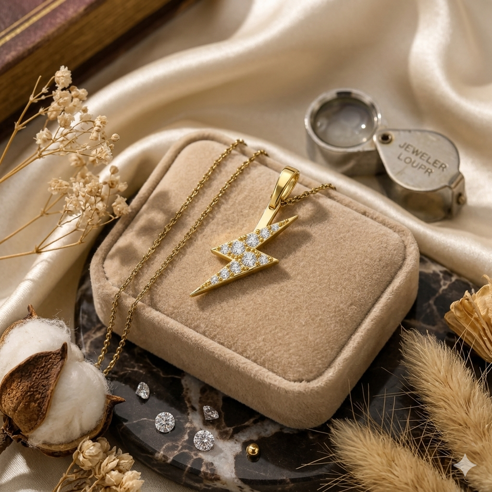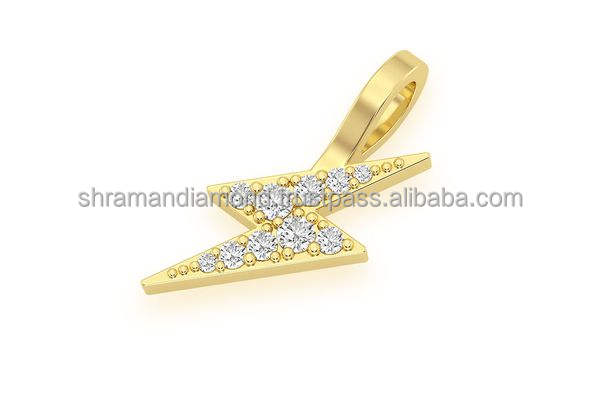 14K Gold Plated Custom Iced Small Bling Lightning Bolt Cluster Pendant Trendy Fine Jewelry Natural Diamonds Necklaces Charm Gift