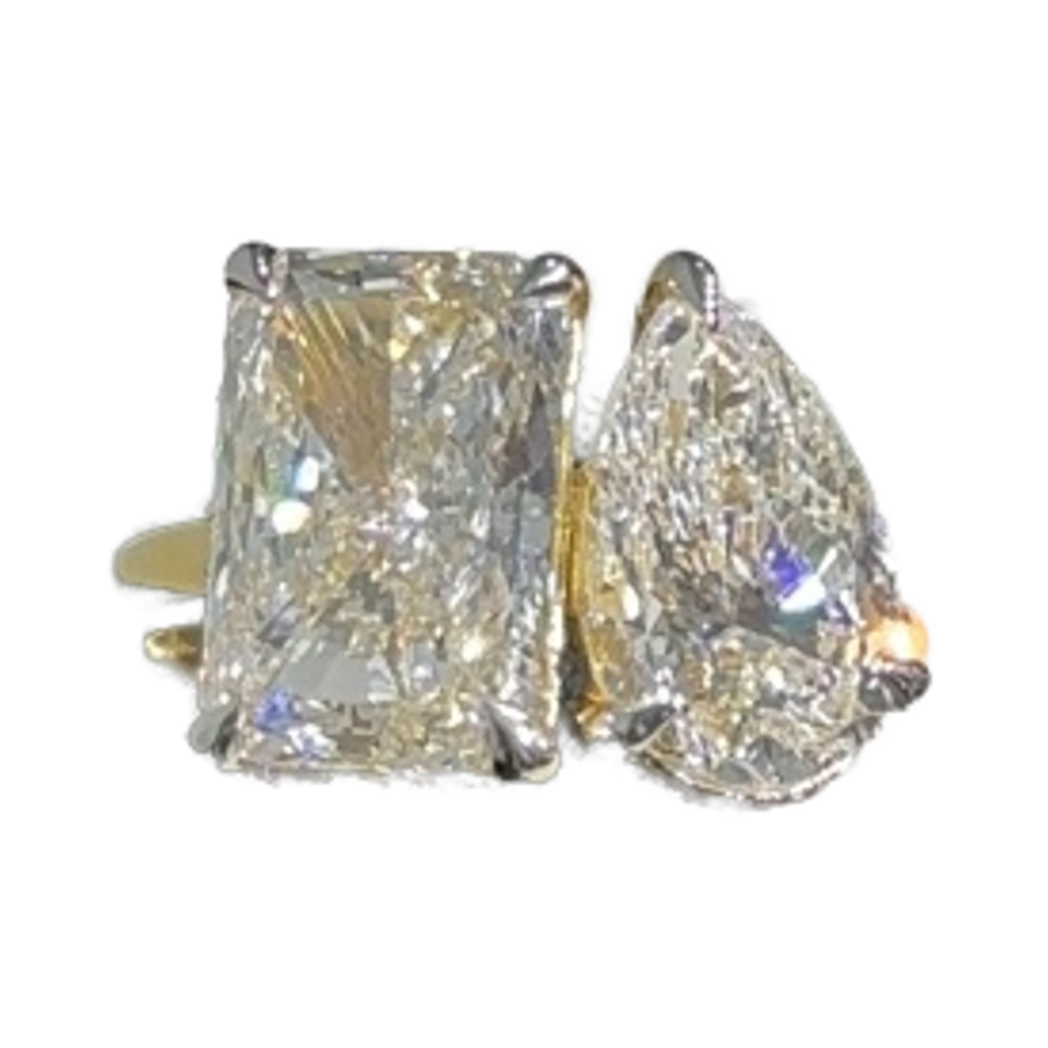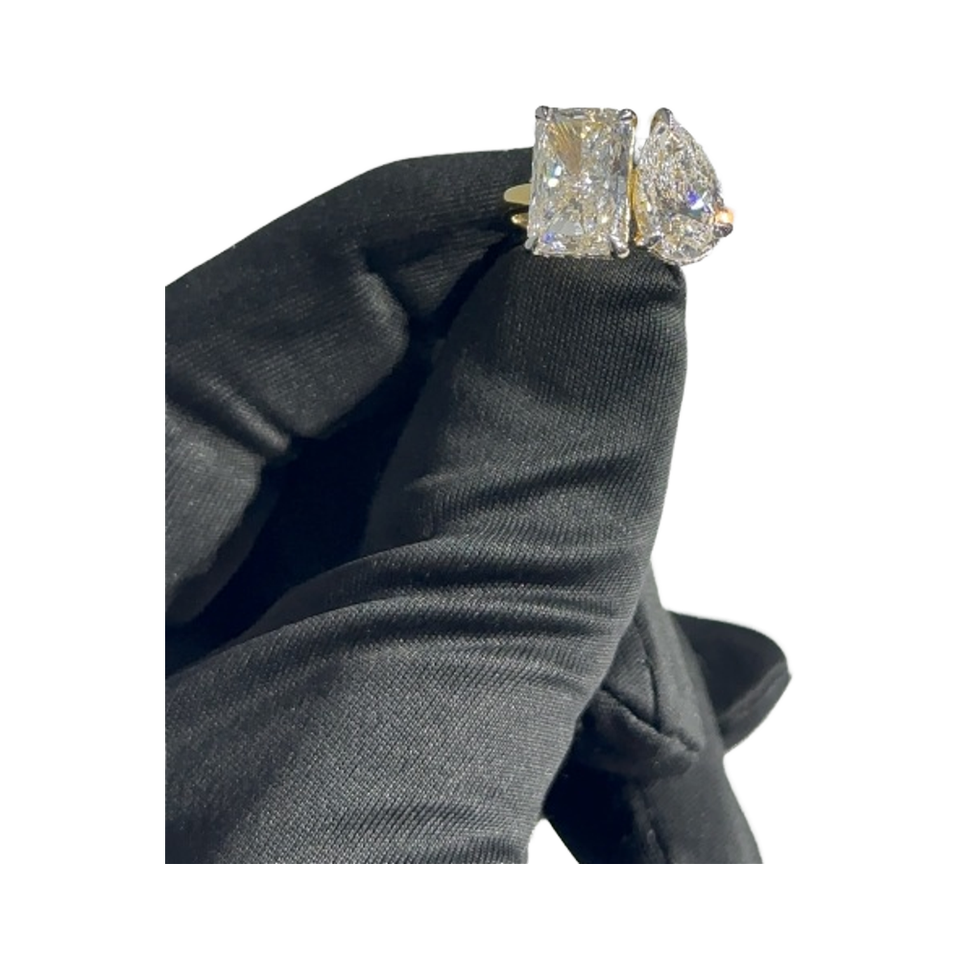 แหวนคู่หมั้นหรูหราทรงลูกแพร์ประดับเพชรสร้างในห้องปฏิบัติการชุบทอง 14K พร้อมไข่มุกน้ำจืดสำหรับงานแต่งงานและเป็นของขวัญ