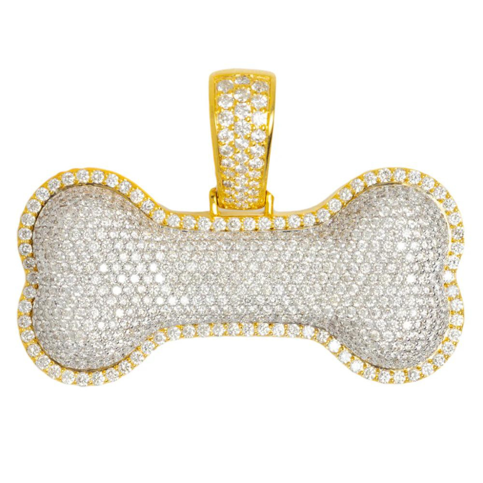 จี้รูปกระดูกสุนัขชุบทอง 14K ประดับเพชรโมอิสซาไนต์ทรงกลมเจียระไนแบบบริลเลียนท์ พร้อมตัวเรือนเงินแท้ 925 สไตล์ฮิปฮอป ของขวัญสำหรับสัตว์เลี้ยง