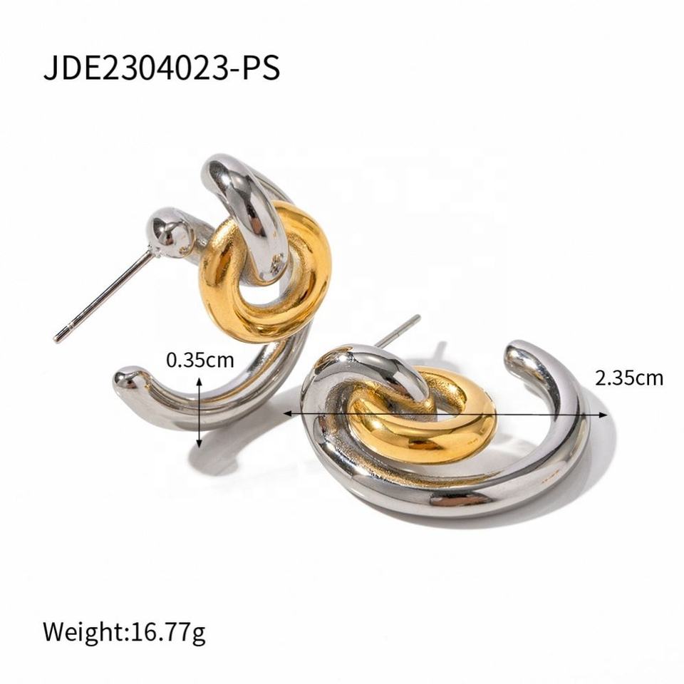 ต่างหูสแตนเลสชุบทอง 14K ลายเรขาคณิตแบบตอก ชุดเครื่องประดับแฟชั่นสำหรับงานปาร์ตี้สุดอินเทรนด์
