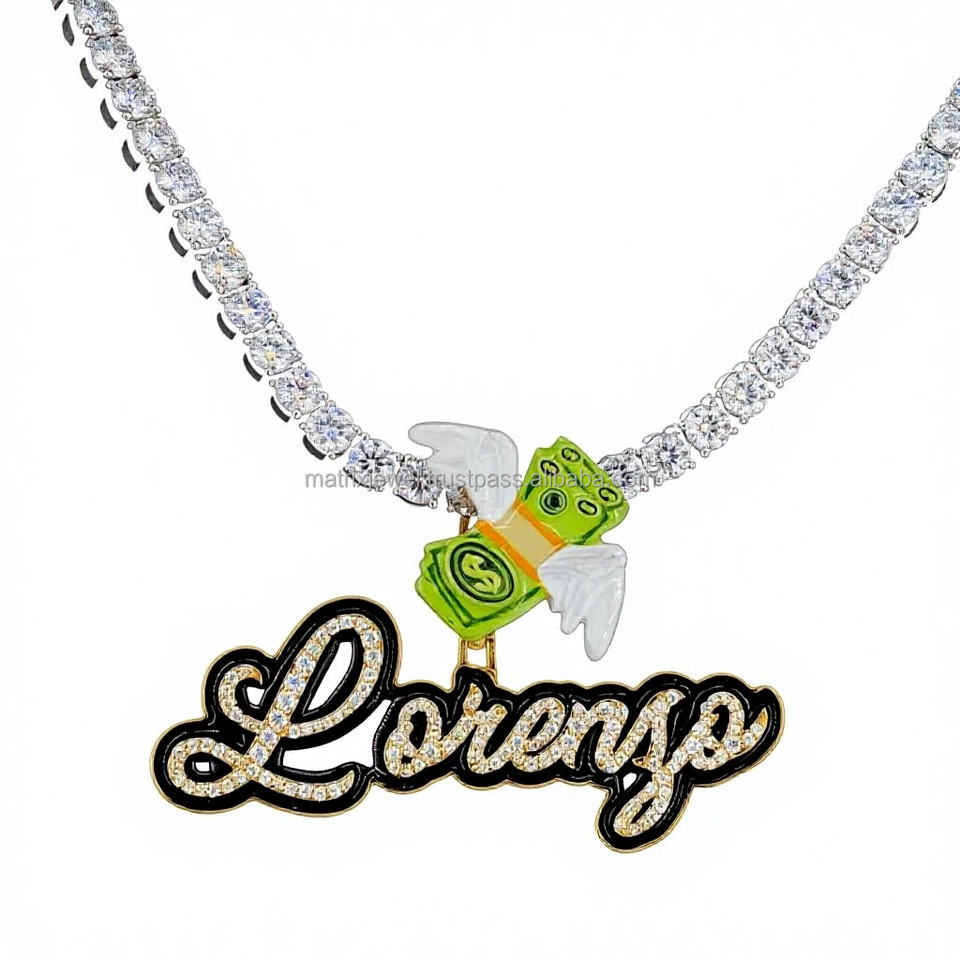 จี้เคลือบทอง14K ประดับเพชร VVS Moissanite เคลือบสีดำมีตัวอักษรที่กำหนดเองได้จี้เงินดอลลาร์