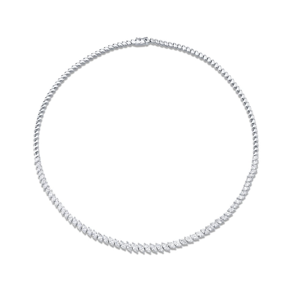 สร้อยคอเทนนิสแบบมีกรอบโลหะประดับเพชรทรงมาร์คีส์ (ธรรมชาติ) แบบไล่ระดับสี ทอง 14K งานฝังแบบ Prong Set เครื่องประดับสำหรับงานแต่งงาน