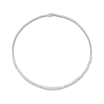 สร้อยคอเทนนิสแบบมีจี้เพชรทรงมาร์คีส์เพาะเลี้ยงและขอบโลหะประดับทอง 14K สำหรับเจ้าสาว