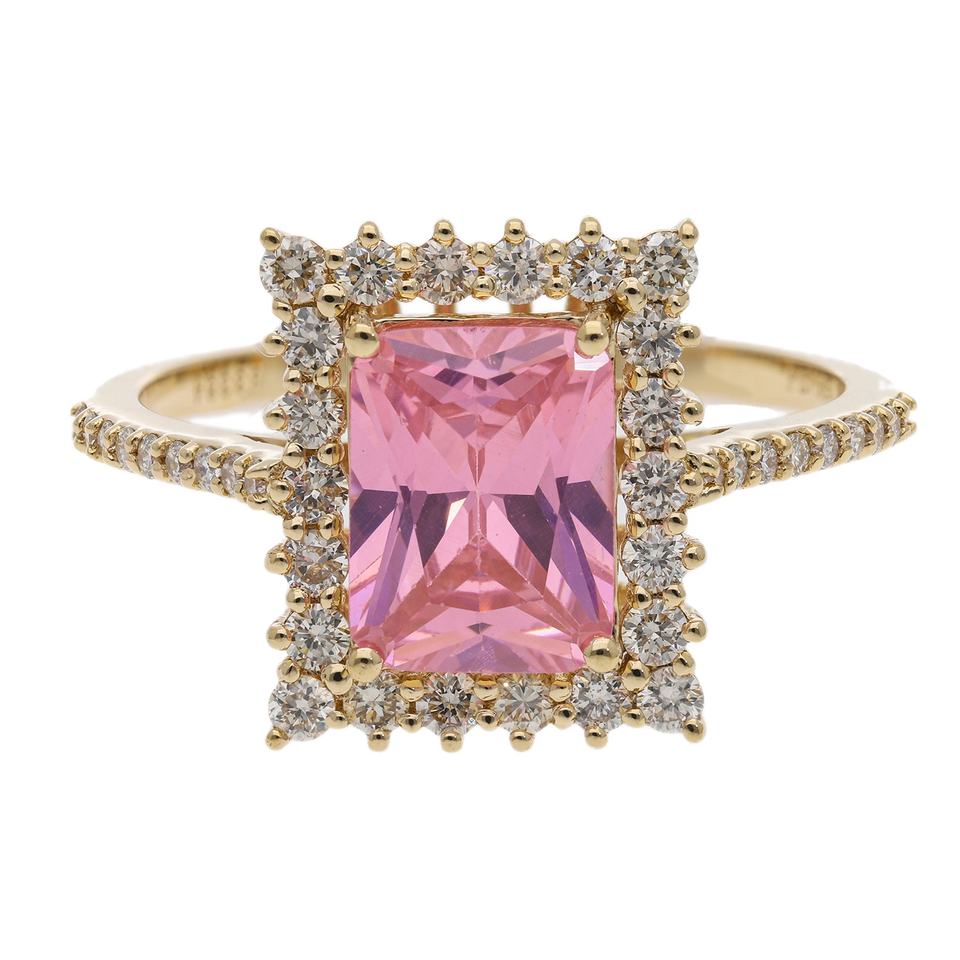 14K Gold Radiant Cut Pink Diamond Halo Ring for Women Luxury Engagement & Wedding Anniversary Jewelry