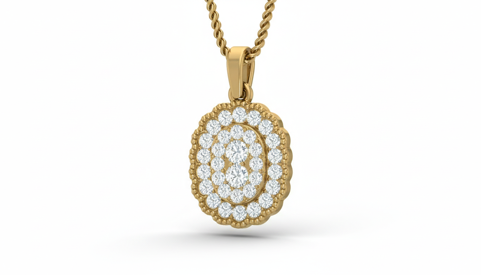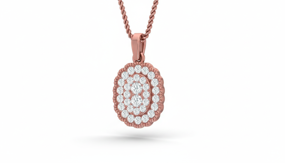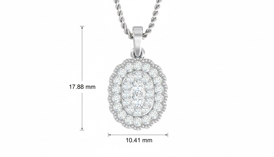 จี้เพชรแท้ทรงวงรี 'Eternal Oval' ชุบทองคำขาว 14K ประดับเพชร 32 เม็ด สำหรับผู้หญิง | 0.36 กะรัต | เครื่องประดับคุณภาพสูง