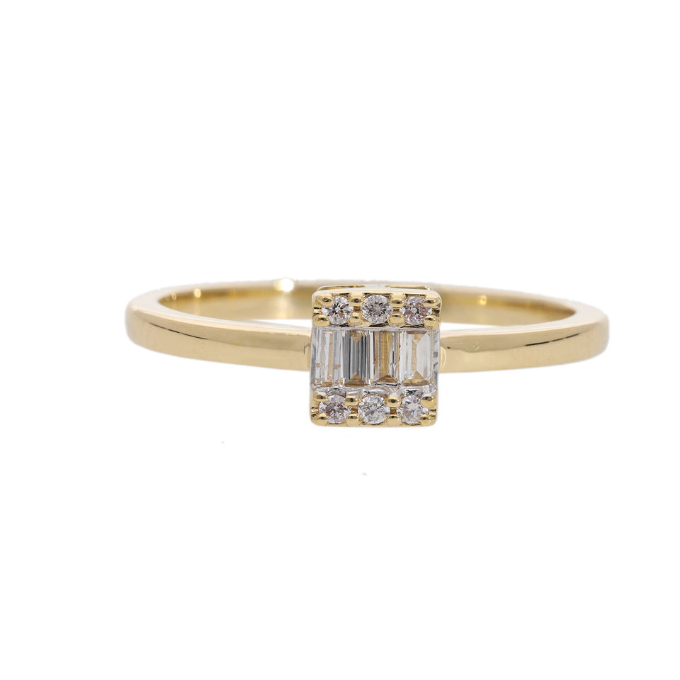แหวนทองคำ14K พร้อมบาแกตต์สี่เหลี่ยมและเพชรทรงกลม0.11CTW ธรรมชาติในการตั้งค่าคลัสเตอร์เพื่อความซับซ้อนเหนือกาลเวลา