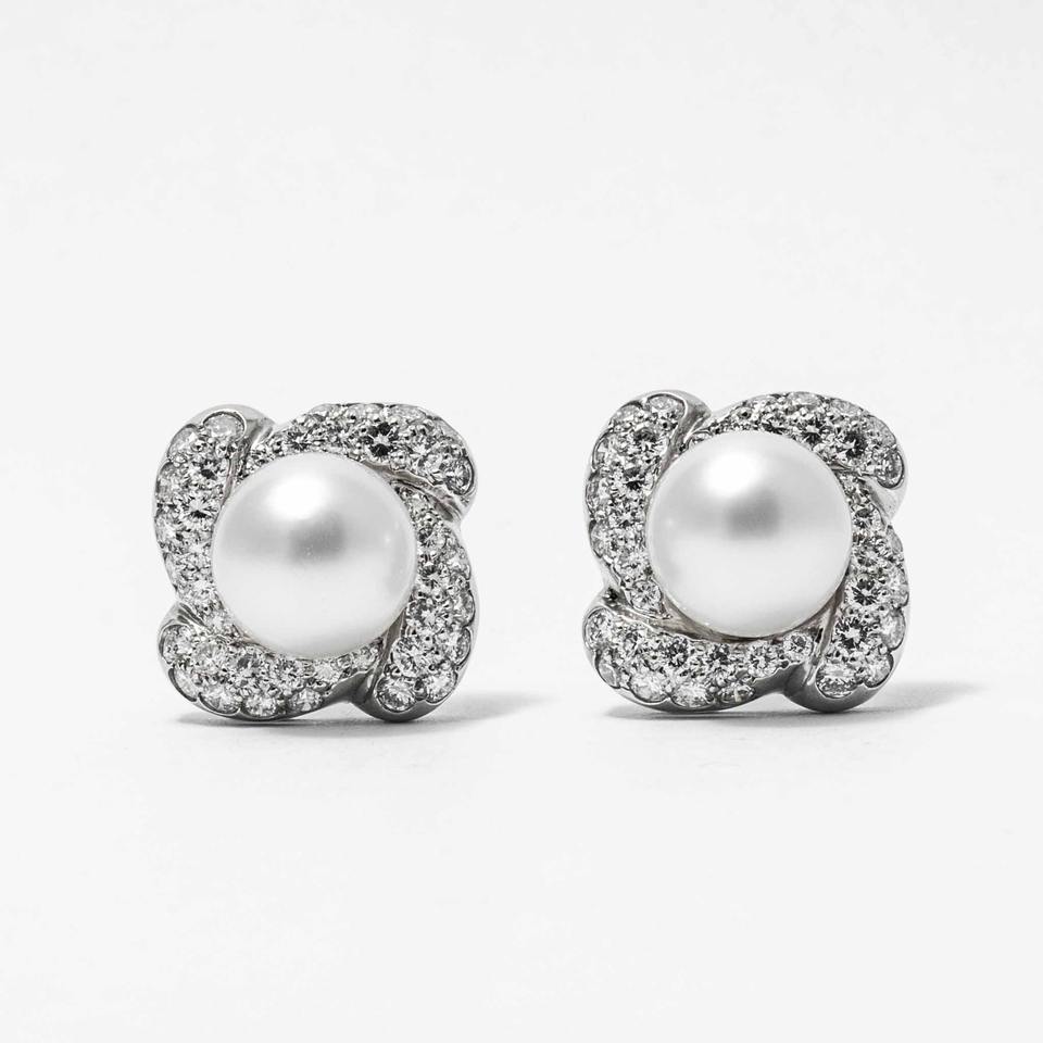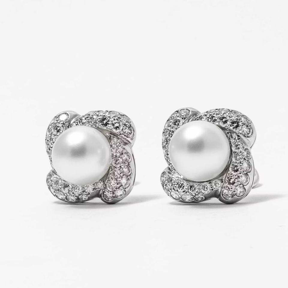 ต่างหูทอง 14K ประดับเพชรเพาะเลี้ยงและมุกทรงดอกไม้ รับรองโดย IGI ชุบโรเดียม ของขวัญสุดหรูสำหรับคุณแม่ เหมาะสำหรับงานแต่งงานและงานเลี้ยง
