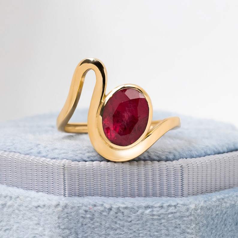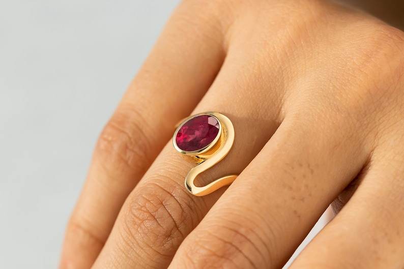 แหวนทับทิมสีทอง14K พร้อมฝาชุดอัญมณีทรงรีแบบห่อหรูหราเครื่องประดับแฮนด์เมดสไตล์ของขวัญที่สมบูรณ์แบบสำหรับการหมั้นของเธอ