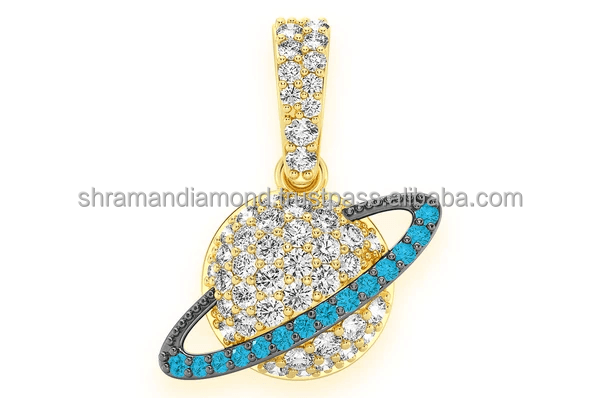 Jewelry Type:Iced Out Blue Planet Saturn 14K Gold Pendant