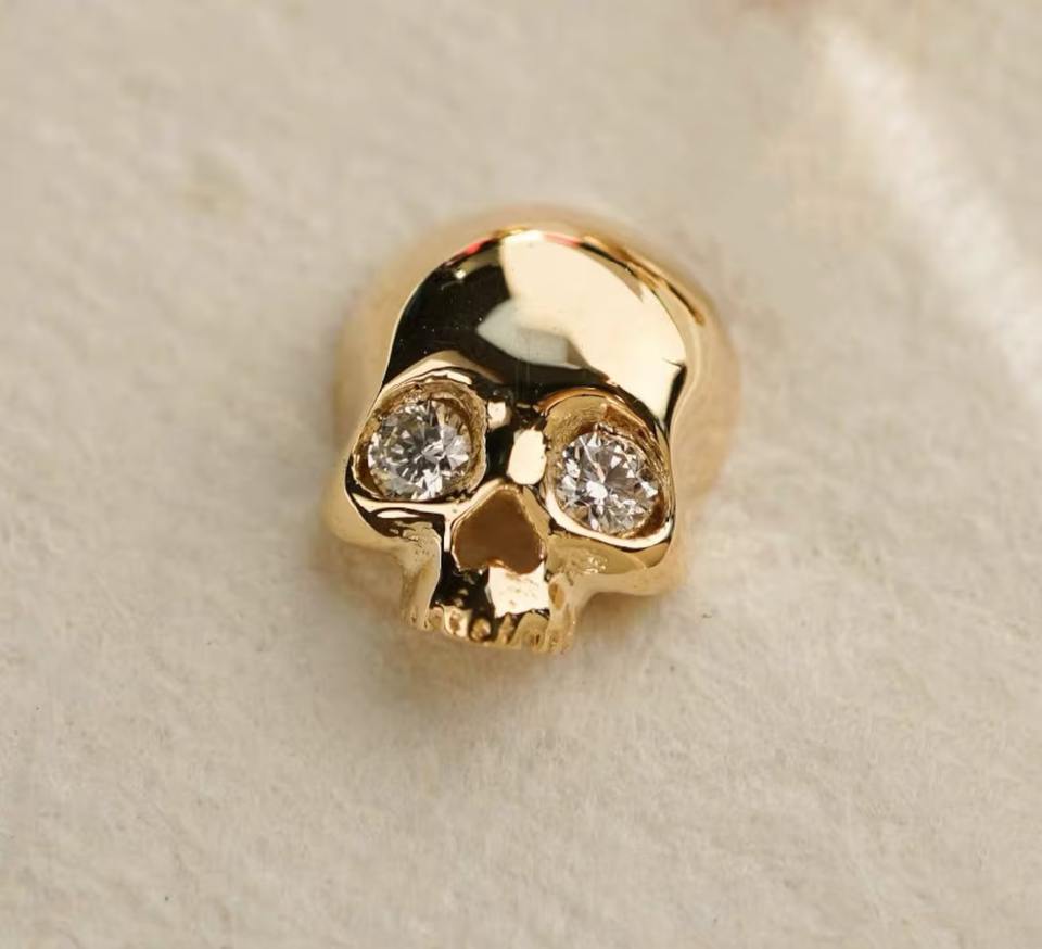 ต่างหูทอง 14K รูปหัวกะโหลกประดับเพชรแบบเจาะหู ต่างหูเพชรเลี้ยงในห้องปฏิบัติการ สำหรับเจาะกระดูกอ่อน ของขวัญวันฮาโลวีนสำหรับผู้หญิง