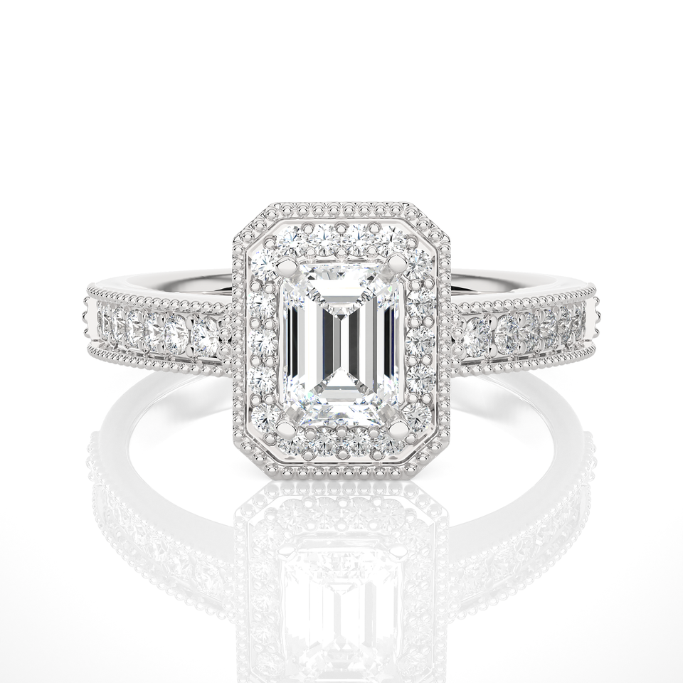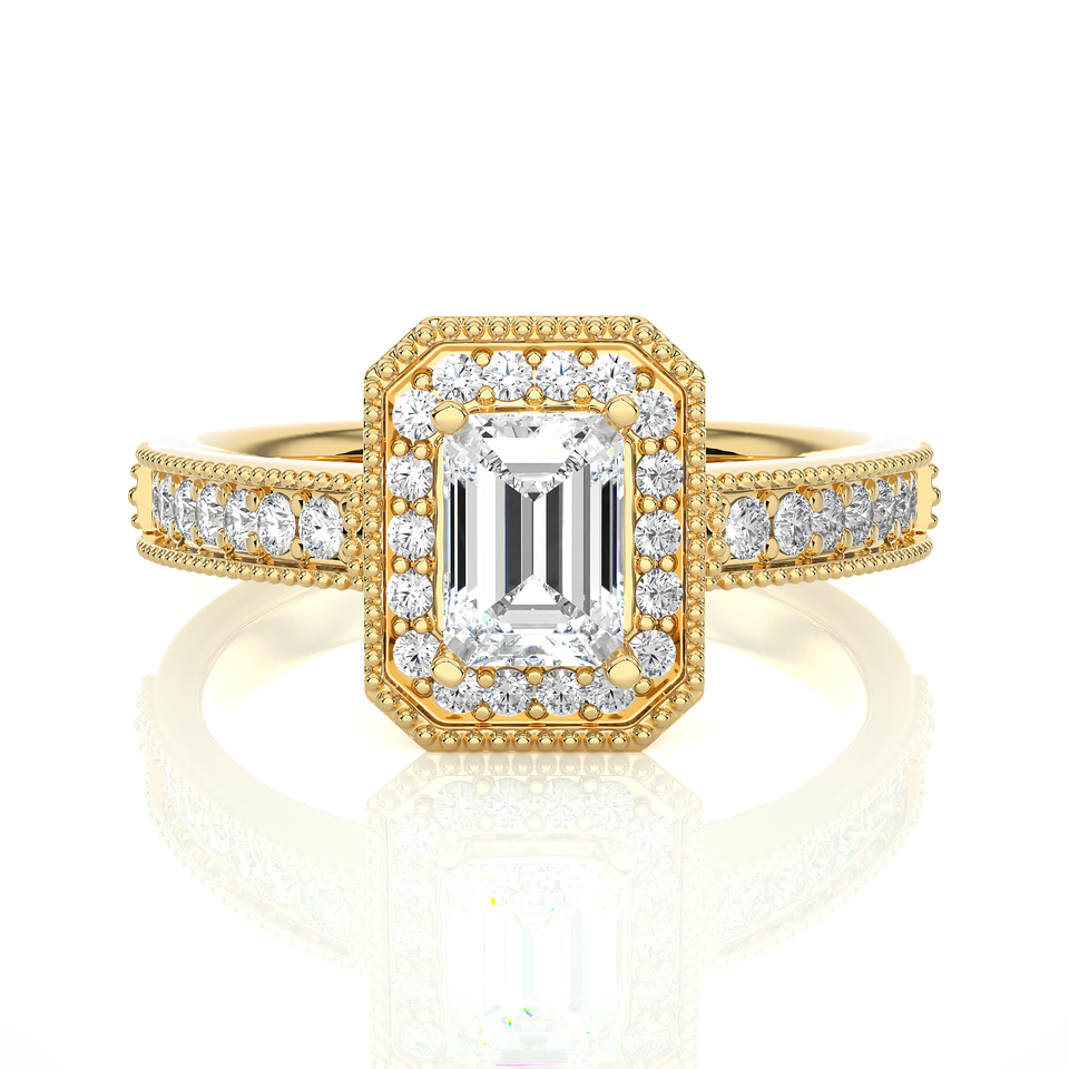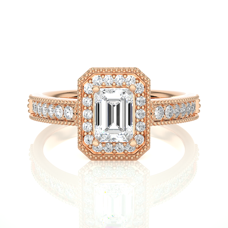 แหวนหมั้นเพชรสีทองประดับเพชรเม็ดเดี่ยว14K พร้อม1.5ct เจียระไนมรกตและเพชรกลมสำหรับผู้หญิง