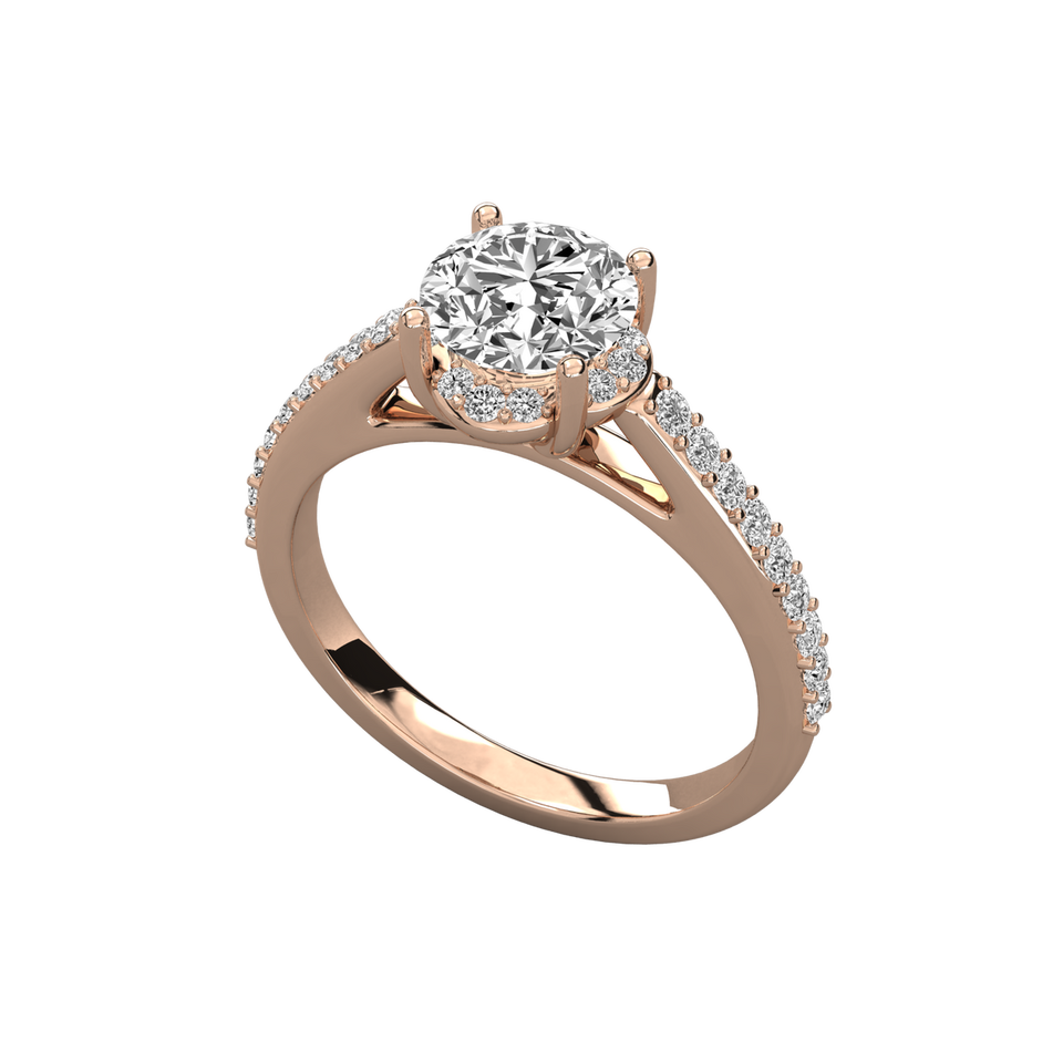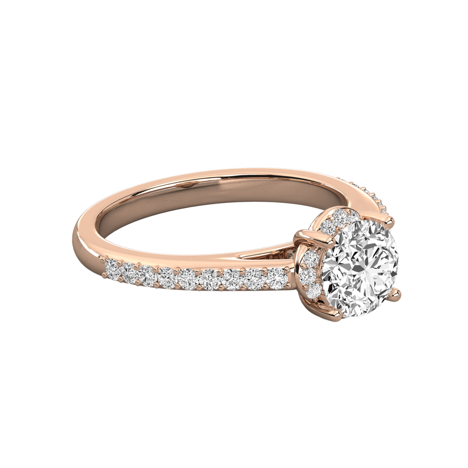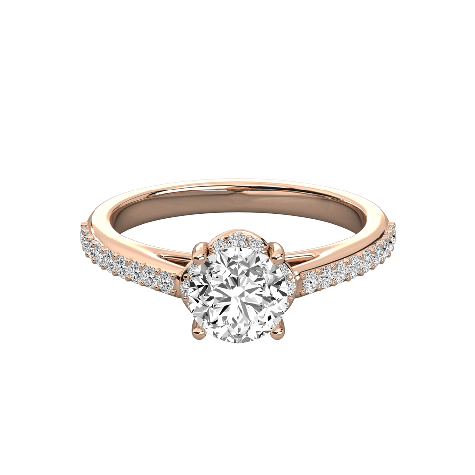 แหวนเพชรทรงกลมทองคำ 14K สำหรับสุภาพสตรี