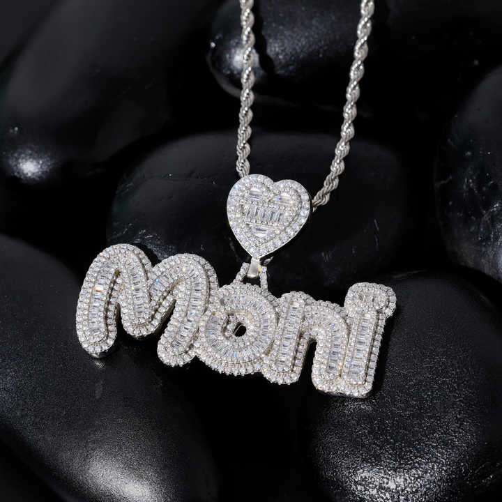 เครื่องประดับที่ดีจี้ฮิปฮอป925เงิน VVS จี้เพชรโมอิสซาไนต์สลักชื่อมือสลักด้วยจี้ชุบโรสโกลด์