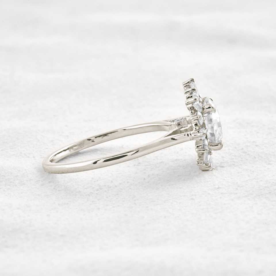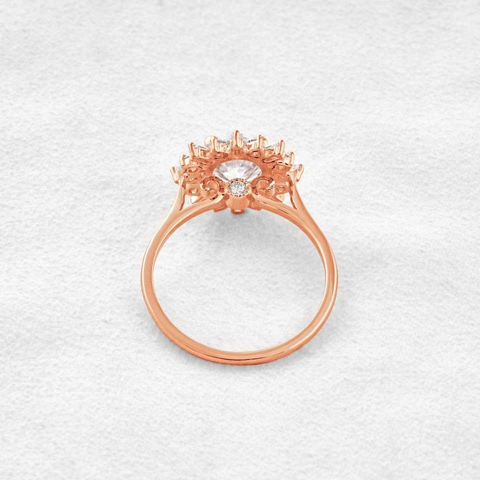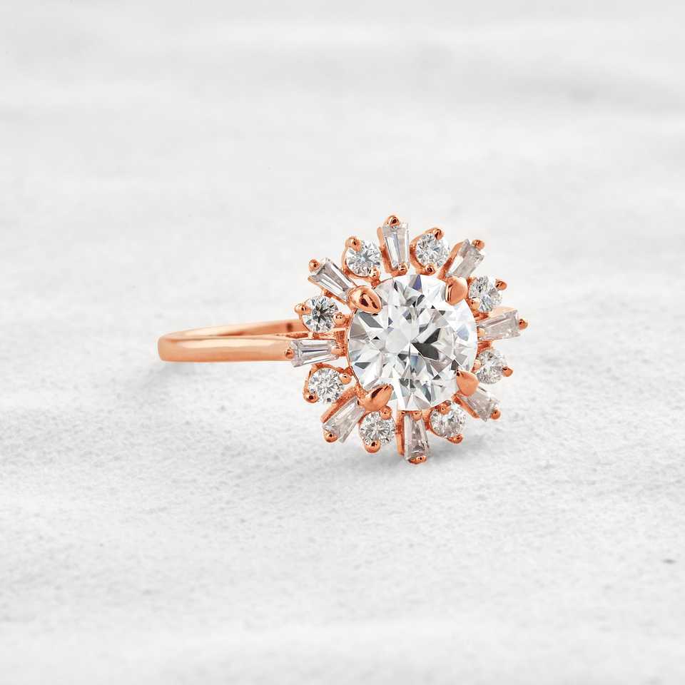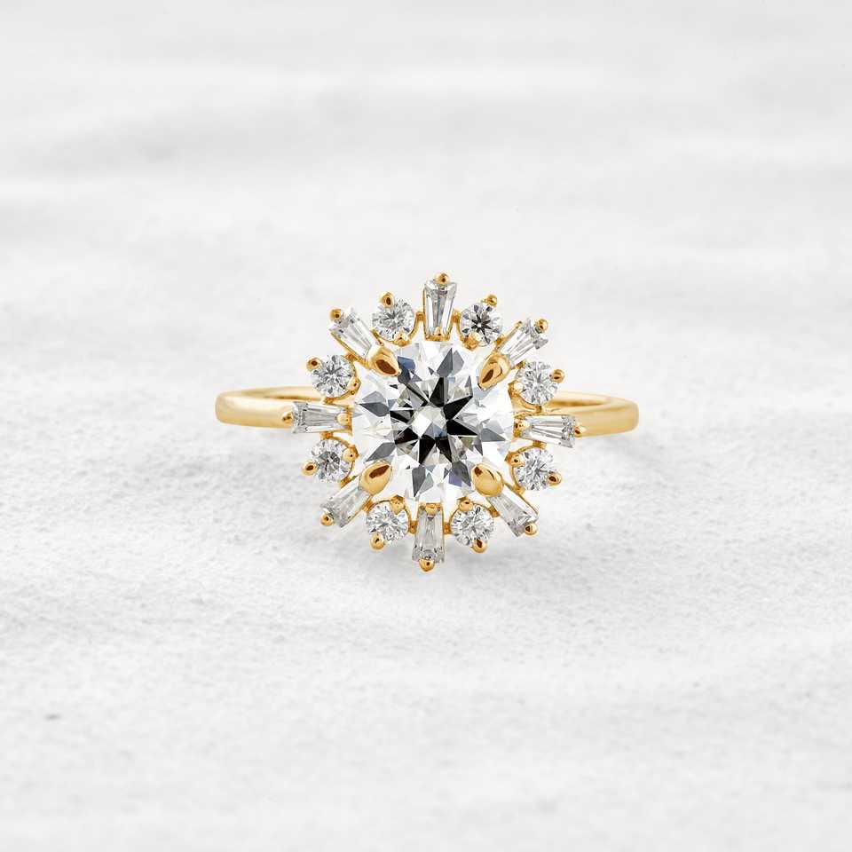 แหวนหมั้นรูปพระอาทิตย์สีทอง14K เครื่องประดับสำหรับงานแต่งงานสุดโรแมนติกพร้อมด้วยเพชรโมอิสซาไนต์และฮาโลสำหรับปาร์ตี้