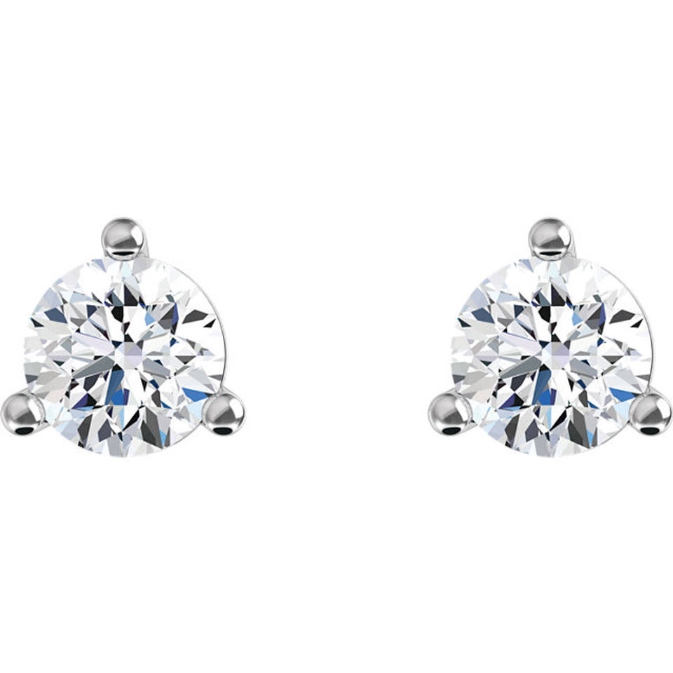 14K Gold Three Prong Martini Classic Round Cut Lab Grown Diamond Stud Earrings