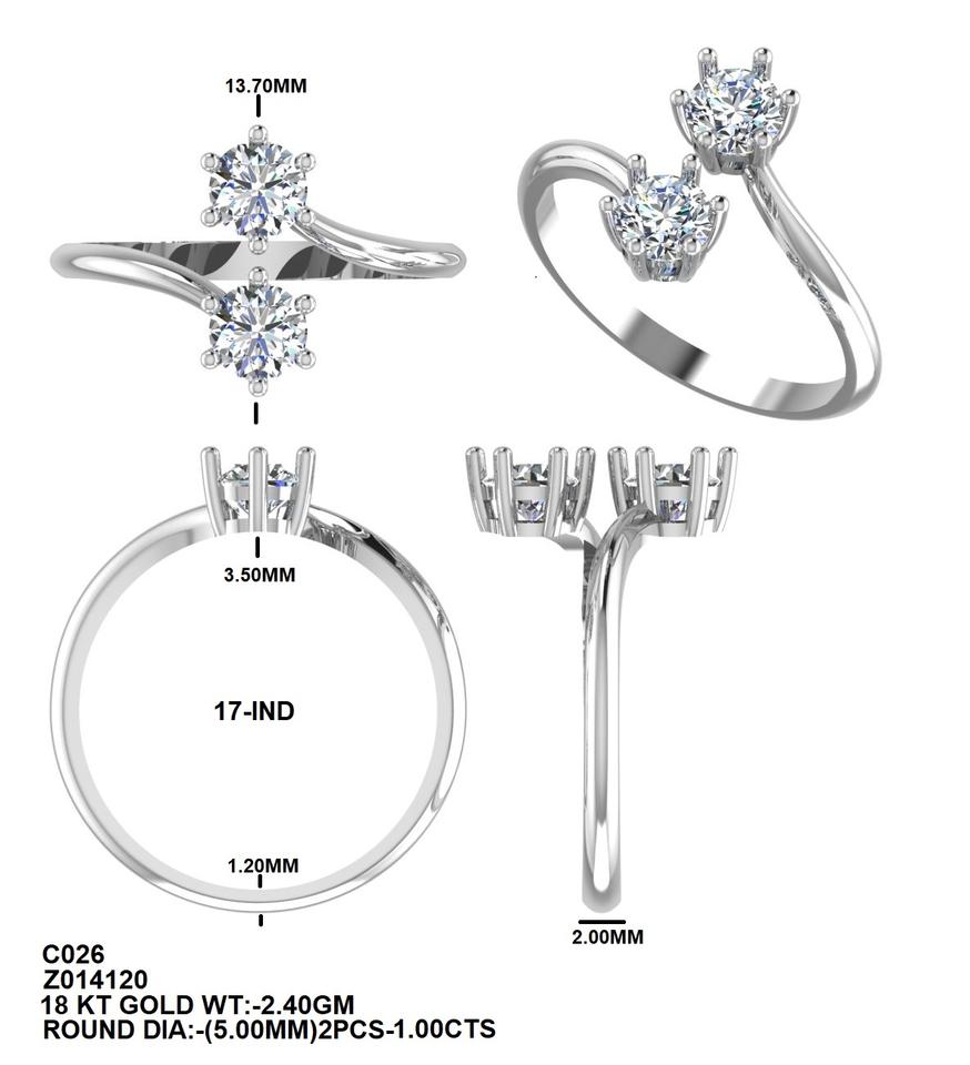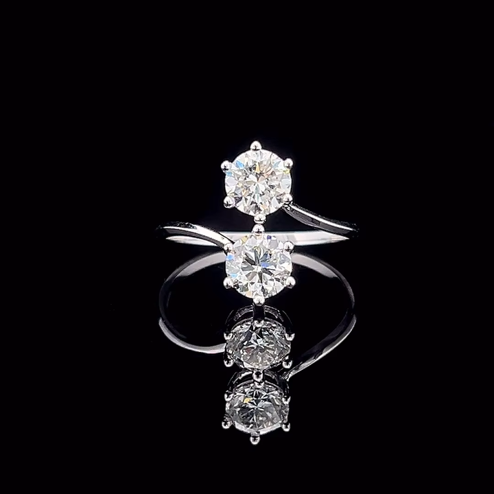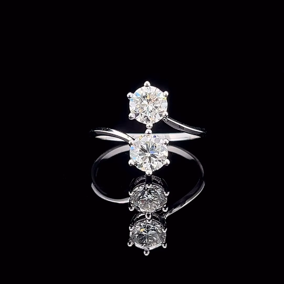 แหวนทอง 14K Toi et Moi ประดับเพชร CVD Lab-Grown แบบสองเม็ด แหวนหมั้น ผู้ผลิตเครื่องประดับ OEM จากอินเดีย