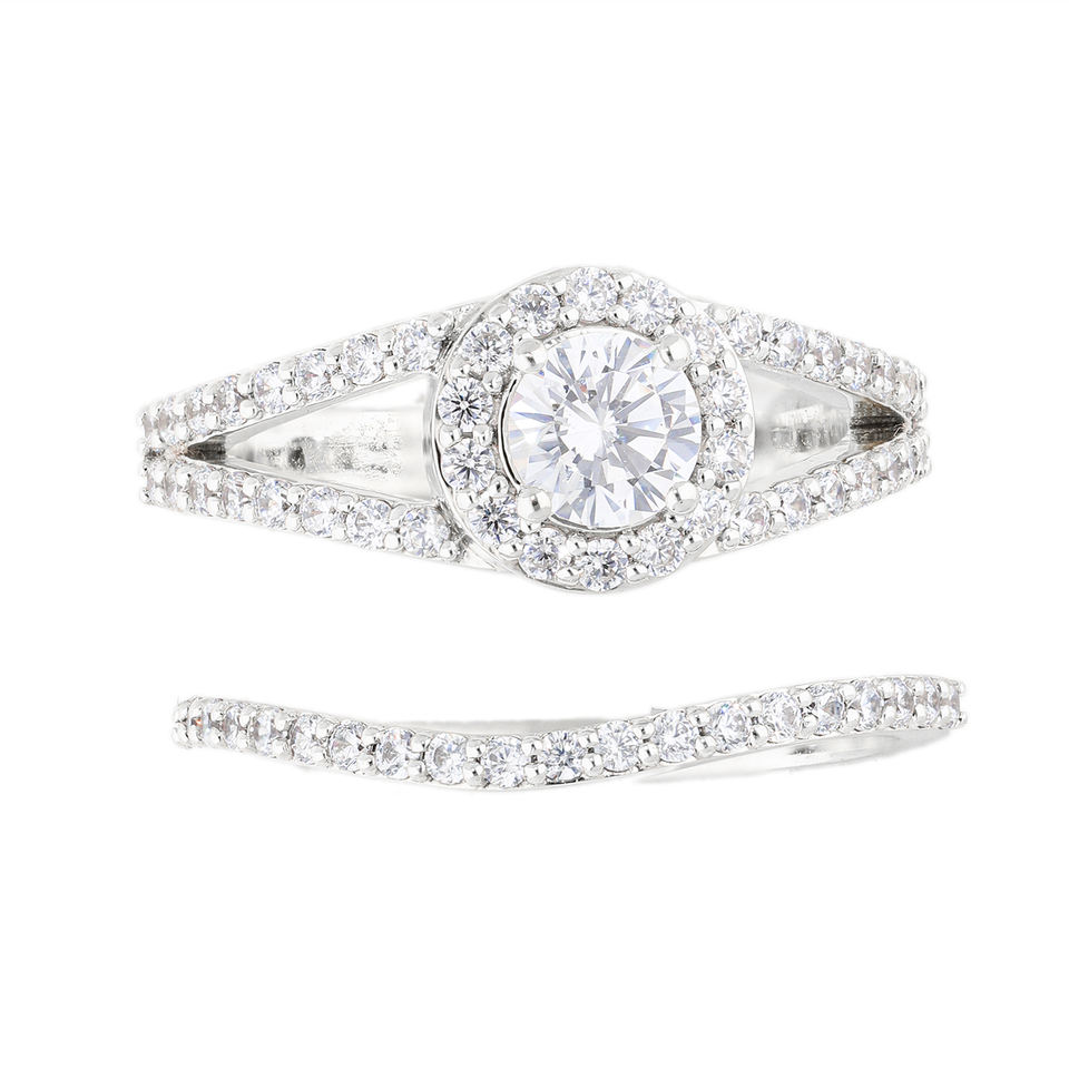 ชุดแหวนสองชิ้นสีทอง14K พร้อมเพชรธรรมชาติ1.2CTW กลมและดีไซน์แบบก้านแยกสำหรับหมั้นในโอกาสที่สง่างาม