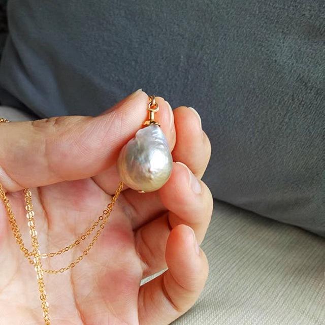 สร้อยคอไข่มุกทรงบาร็อคธรรมชาติ หุ้มด้วยทอง 14K พร้อมภาพวาดสีน้ำมัน ดีไซน์เรียบหรูสไตล์พระราชวัง