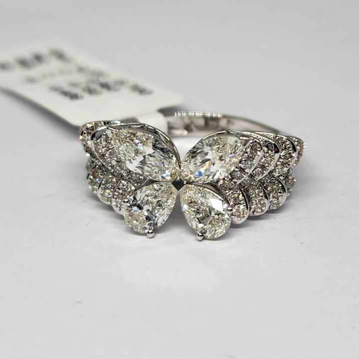 แหวนเพชรรูปผีเสื้อทองคำขาว 14K ประดับเพชรทรงแฟนซีธรรมชาติ สี E-F ความสะอาด VS ได้รับการรับรองจาก IGI น้ำหนัก 1.69 กะรัต ชุบโรเดียม สำหรับผู้หญิง