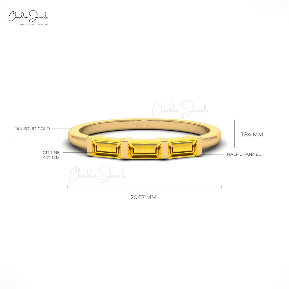 แหวนหินสามชิ้นทำจากทองคำบริสุทธิ์14K 0.25 CT ชุดครึ่งช่องทางตัดซิทรินทำด้วยมือเครื่องประดับชั้นดีสำหรับงานแต่งงานครบรอบ