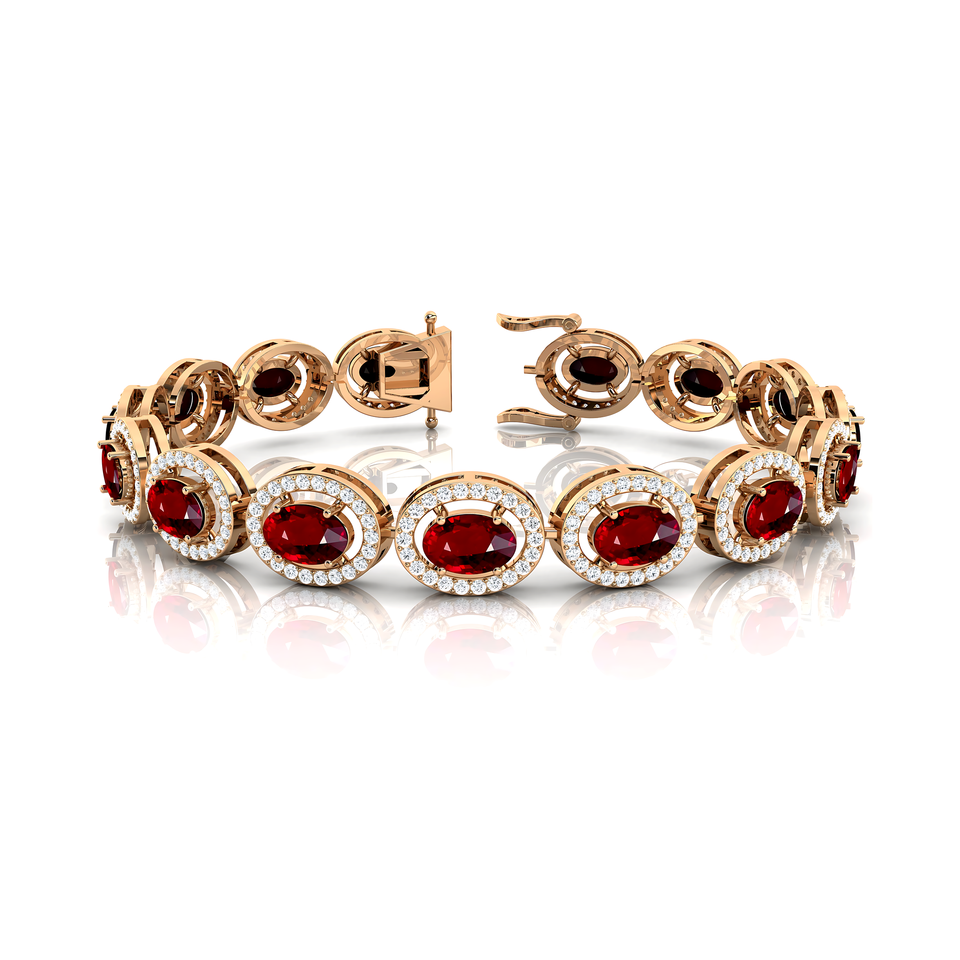 สร้อยข้อมือทับทิมบริสุทธิ์14K ทรงรีตัดด้วยเพชรสีแดงประดับเพชรด้านข้างสร้อยข้อมือทับทิมทำมือราคาโรงงานขายส่ง