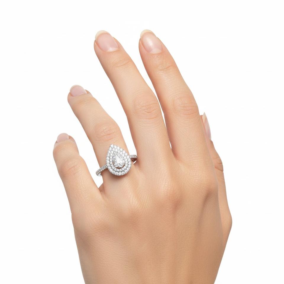 ชื่อผลิตภัณฑ์:แหวนแต่งงานทอง 14K ทรงลูกแพร์ ประดับเฮโลสองชั้น
