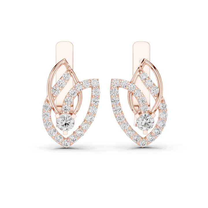 ต่างหูทรงหยดน้ำดีไซน์ใบไม้ประดับเพชรเลี้ยงในห้องปฏิบัติการ ทองคำโรสโกลด์ 14K แรงบันดาลใจจากธรรมชาติสุดหรู น้ำหนัก 0.546 กะรัต