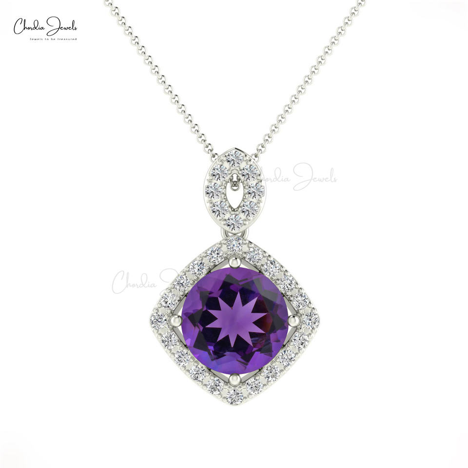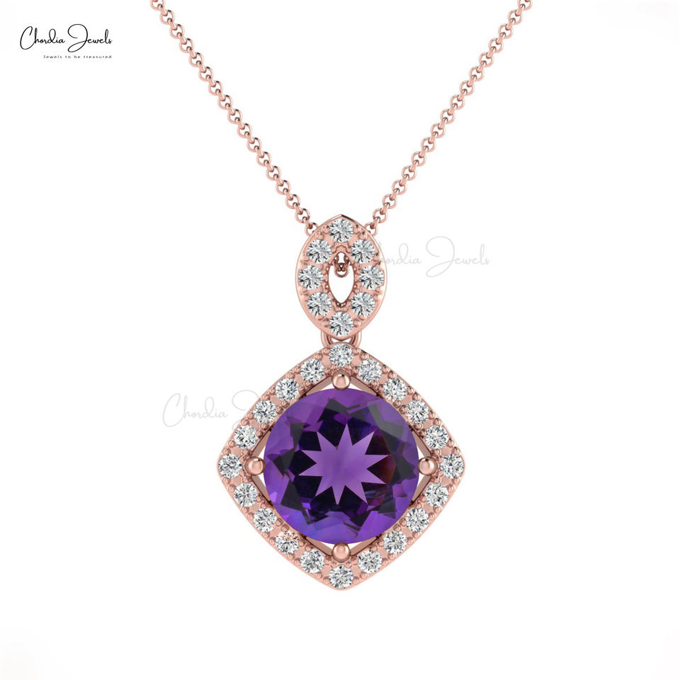 14K ทองแท้7มม. จี้พลอยอเมทิสต์แอฟริกันพร้อมจี้เพชรสี G-H คริสเตียนจี้โซลิแทร์ขายส่ง