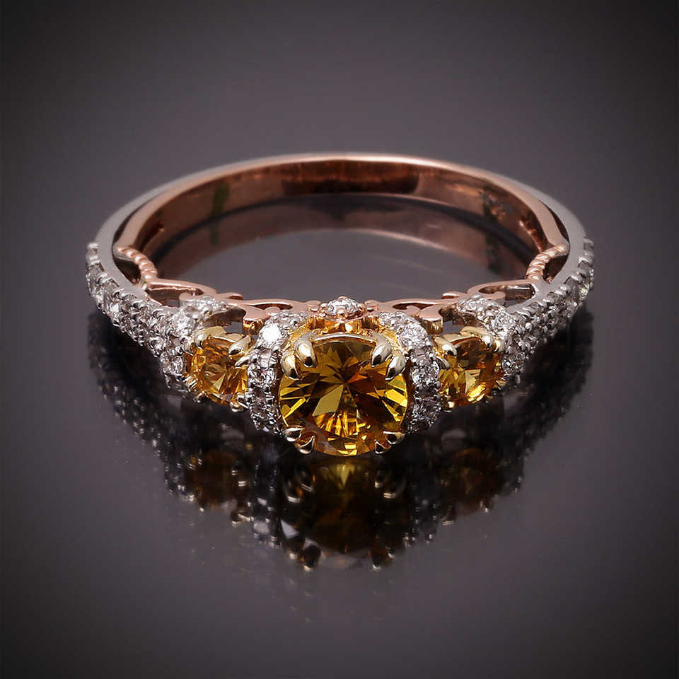 แหวนพลอยแซฟไฟร์สีเหลืองทรงกลมทองธรรมชาติ14K แหวนแกะสลักด้วยมือ2025ดีไซน์ล่าสุดแหวนหมั้นเพชรแท้